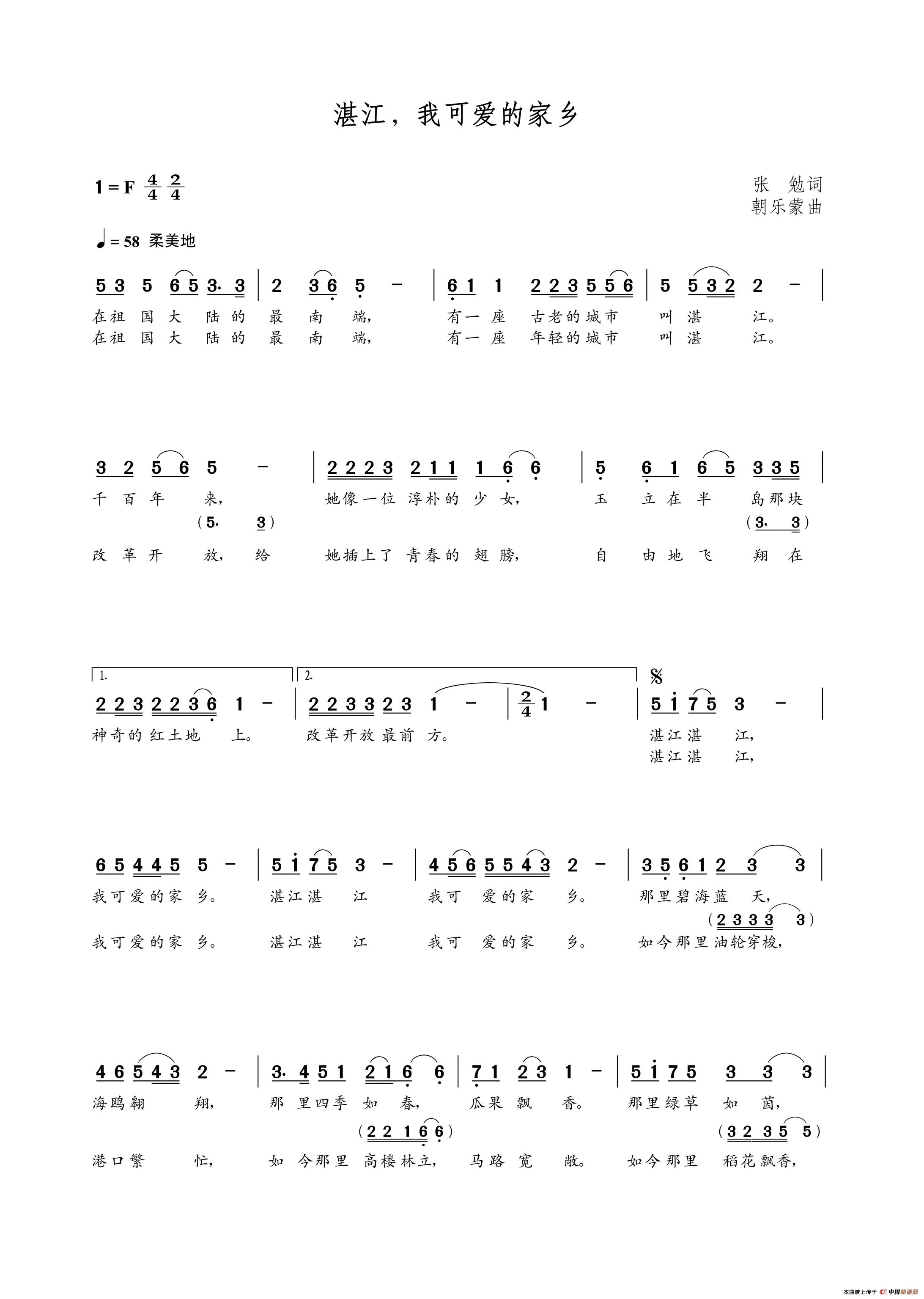湛江我可爱的家乡(张勉词 朝乐蒙曲)