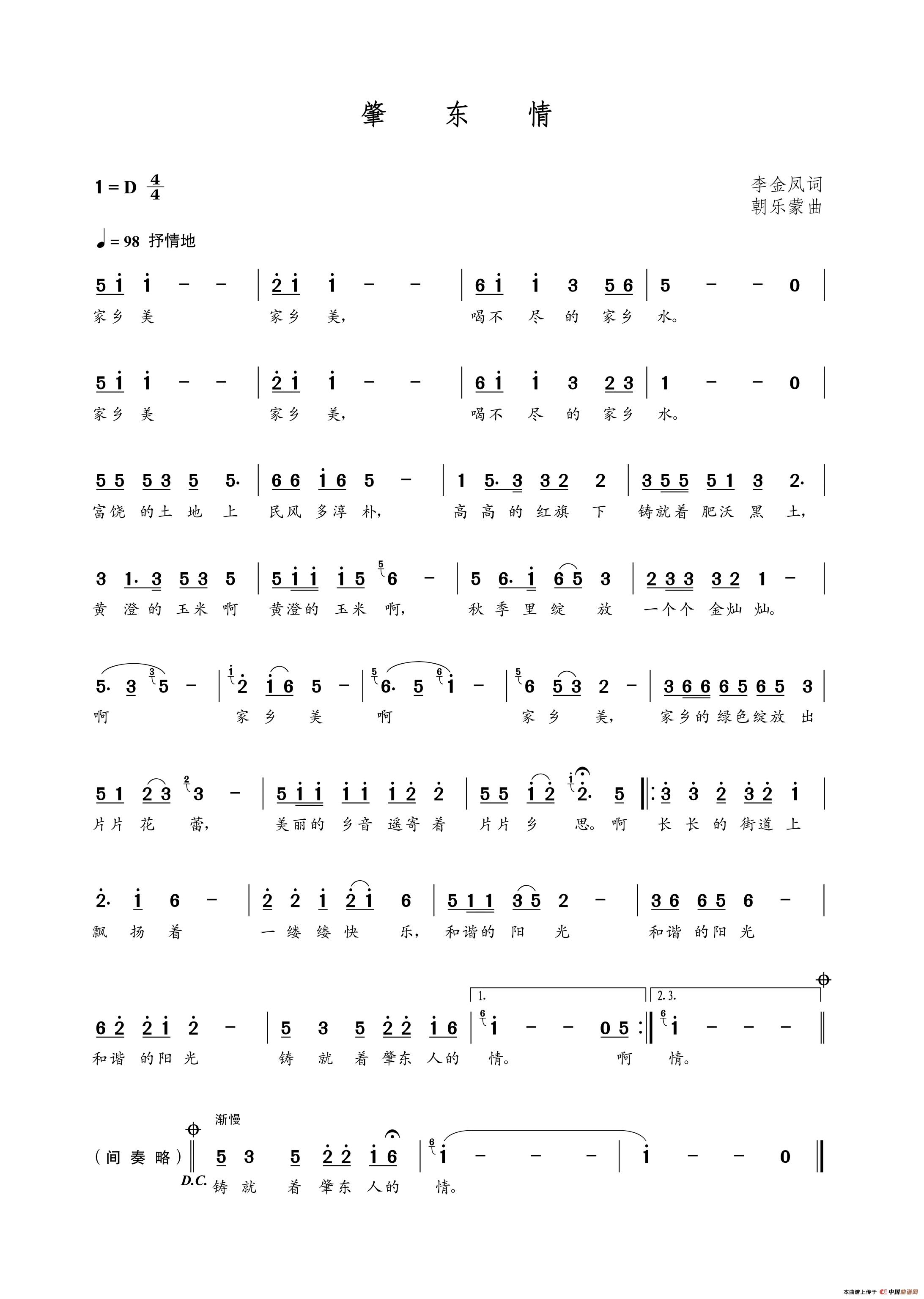 关于《肇东情》曲谱的评论