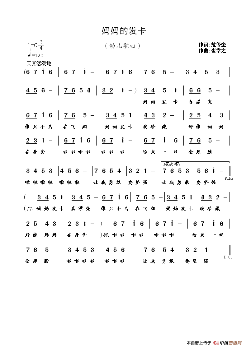 《妈妈的发卡(范修奎词 崔幸之曲)》文本歌词