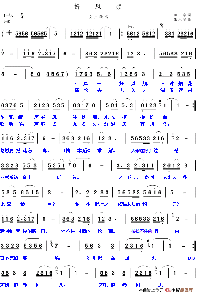 关于《好风频》曲谱的评论
