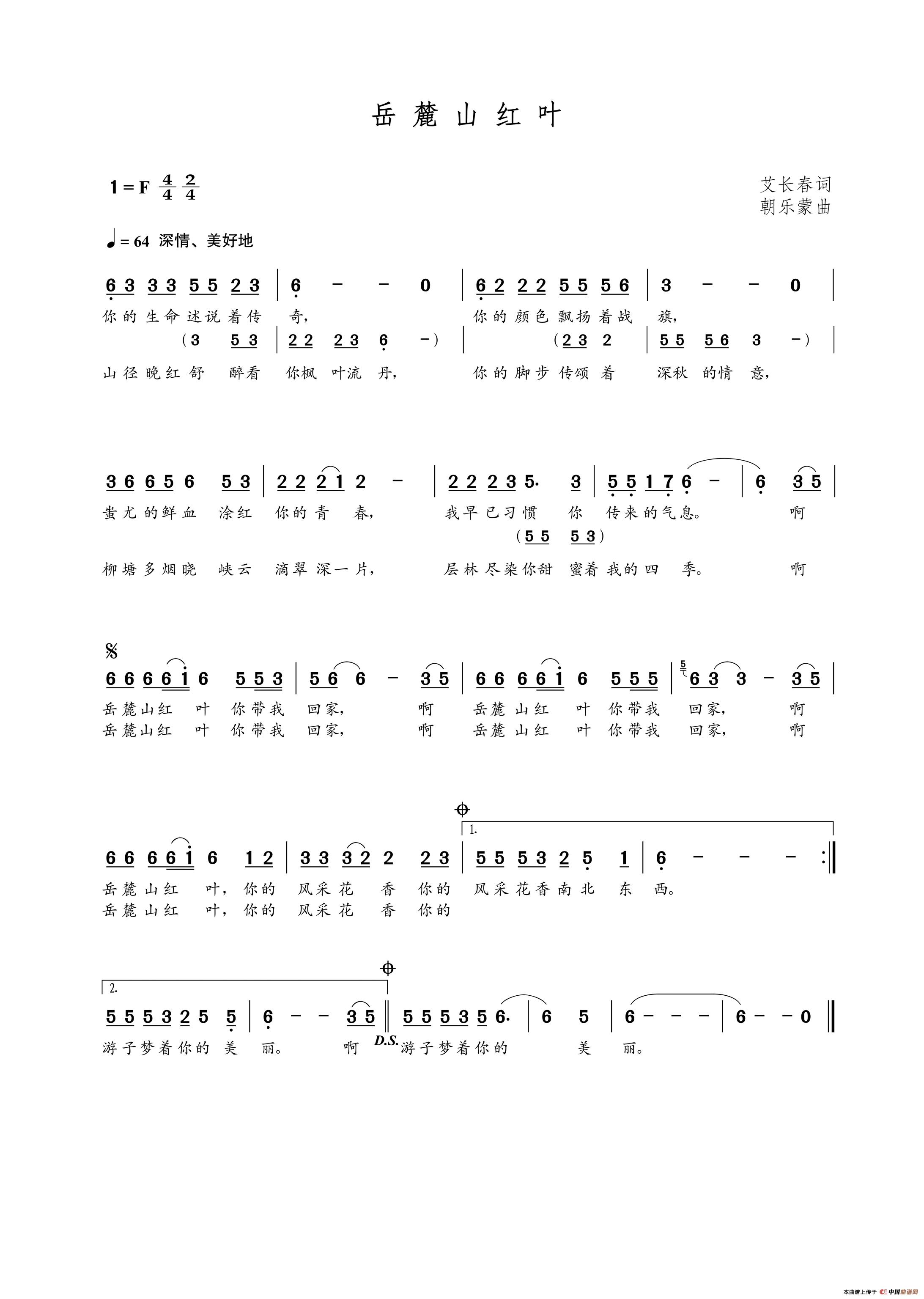 岳麓山红叶(艾长春词 朝乐蒙曲)(1)_原文件名:岳麓山红叶.jpg