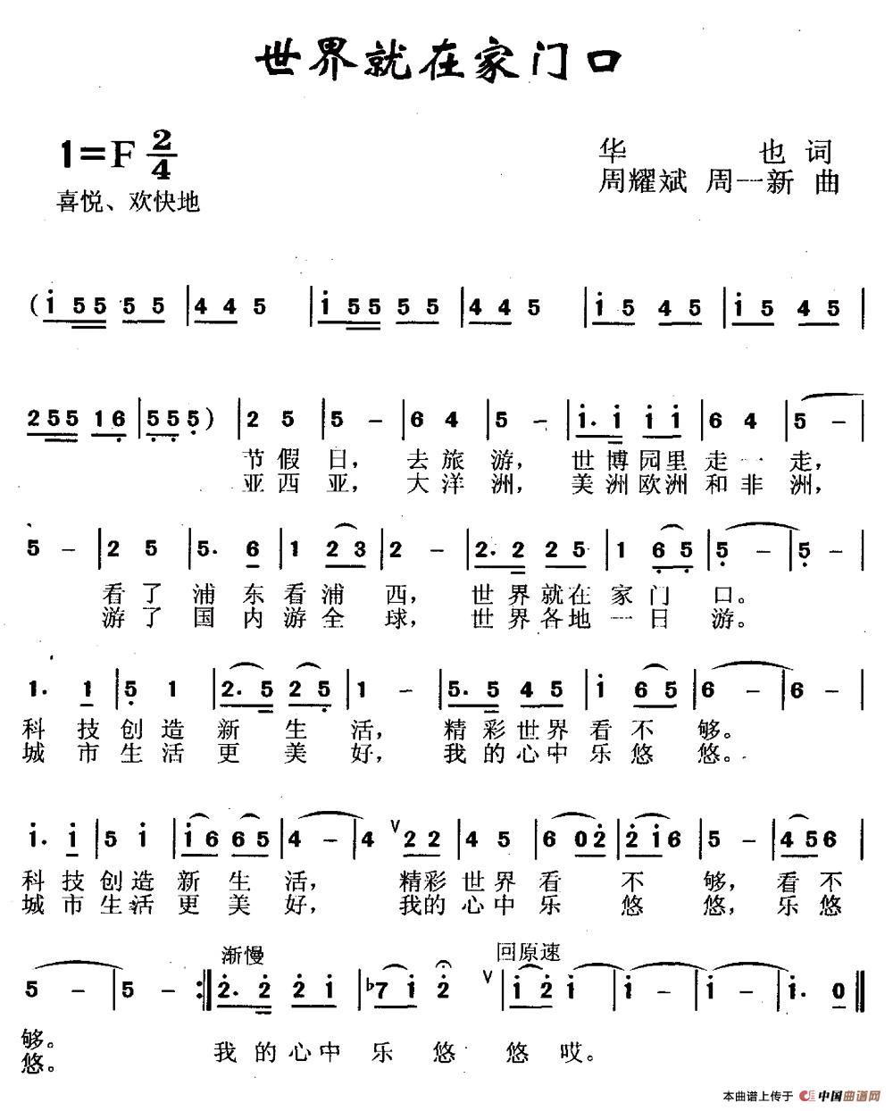 《世界就在家门口》发表在《校园歌声》2011年第1期。