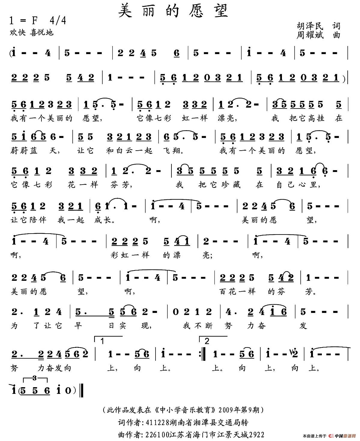 《美丽的愿望》发表在《中小学音乐教育》2009年第9期。