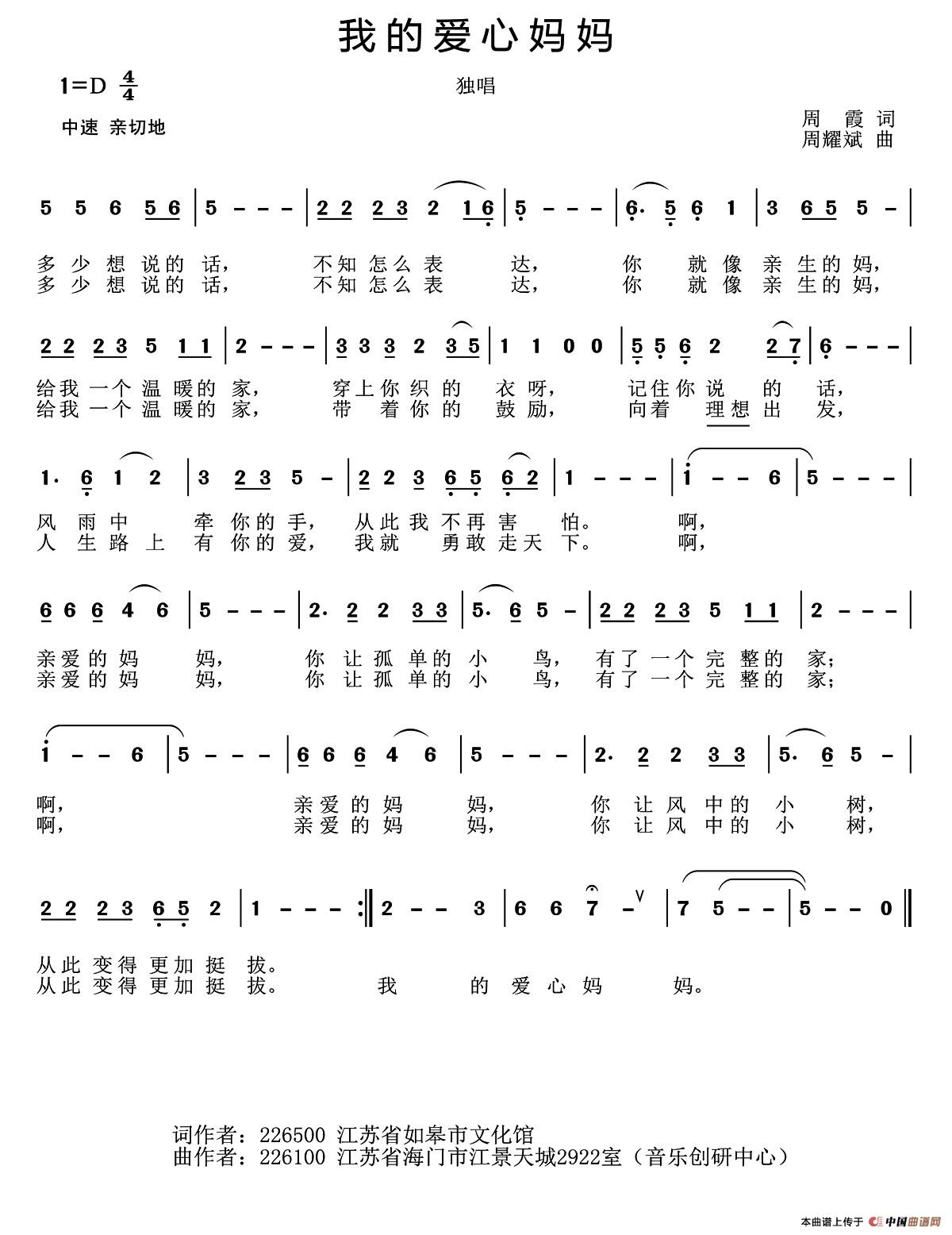 作词:周霞   作曲:周耀斌   来源:原创作品   上传:周耀斌   日期:2015-05-19   浏览次数: