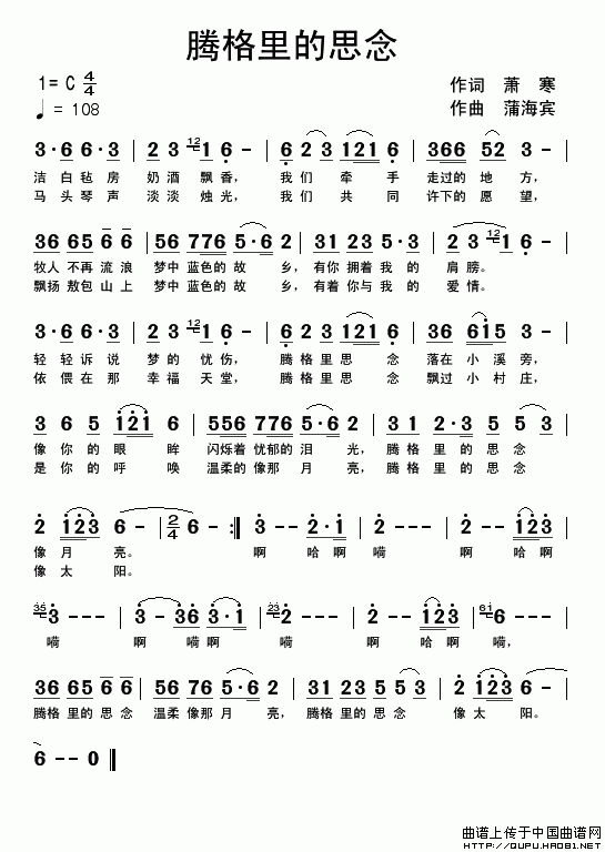 作词:萧寒   作曲:蒲海宾   格式:简谱   来源:蒲海宾(作曲)原创上传   上传:蒲海宾   日期:2010-10-21   浏览次数: