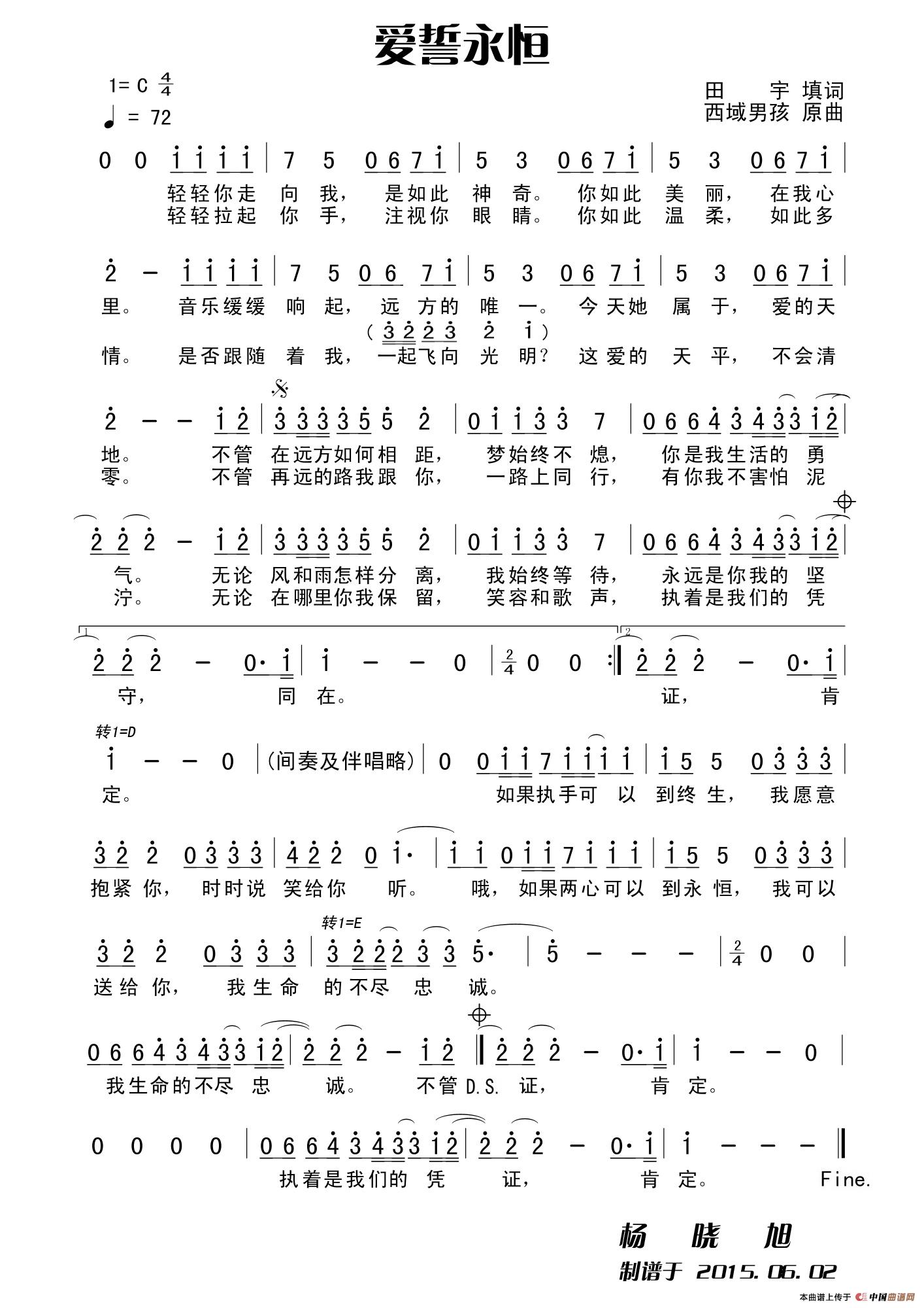 关于《爱誓永恒》曲谱的评论