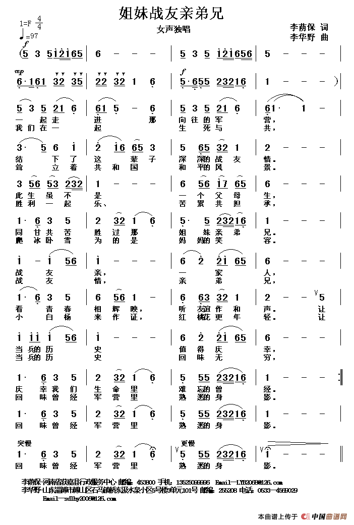 姐妹战友亲兄弟(李荫保词 李华野曲)