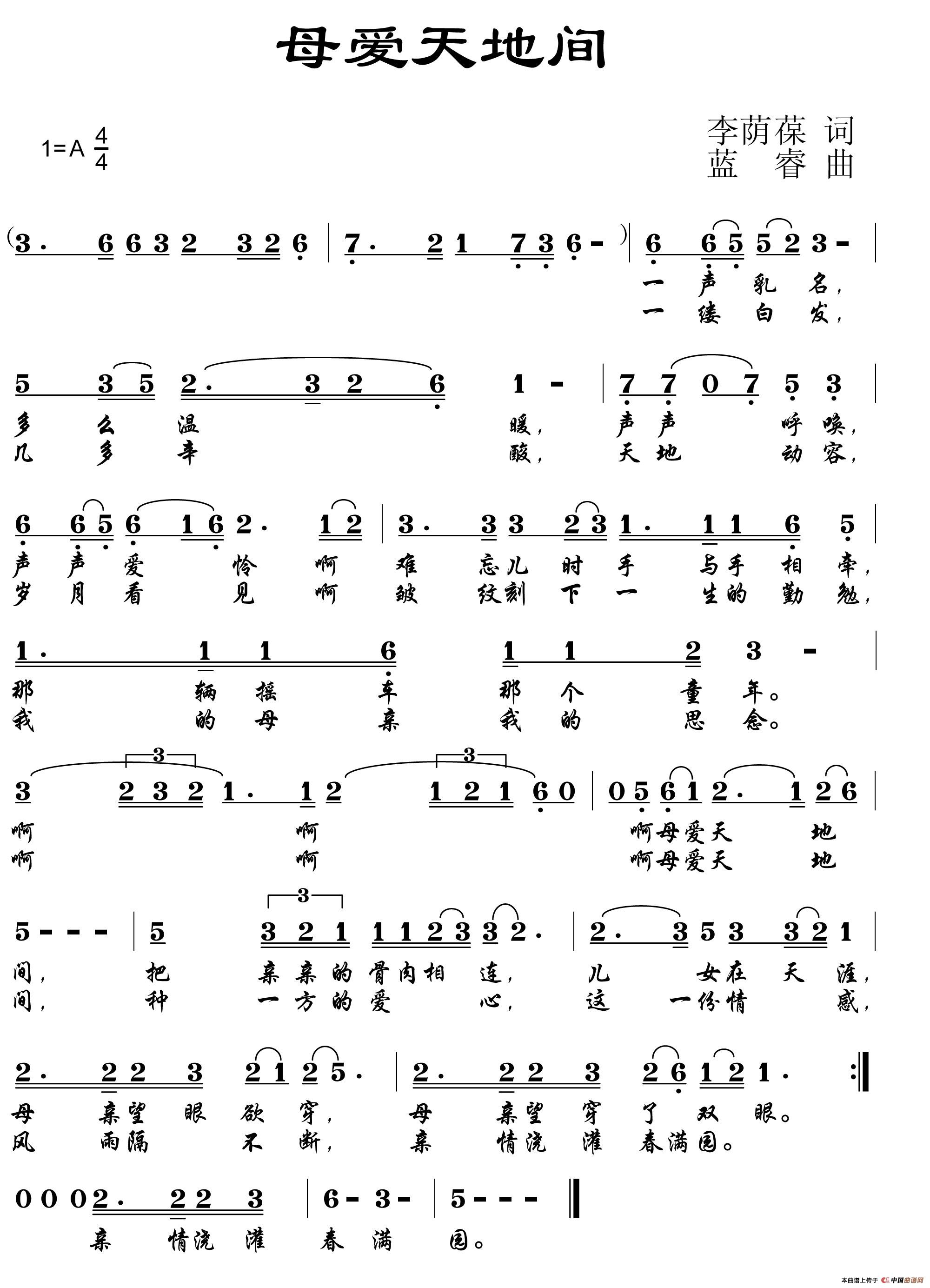母爱天地间(李荫保词 蓝睿曲)(1)_原文件名:《母爱天地间》李荫保词 蓝睿曲.jpg