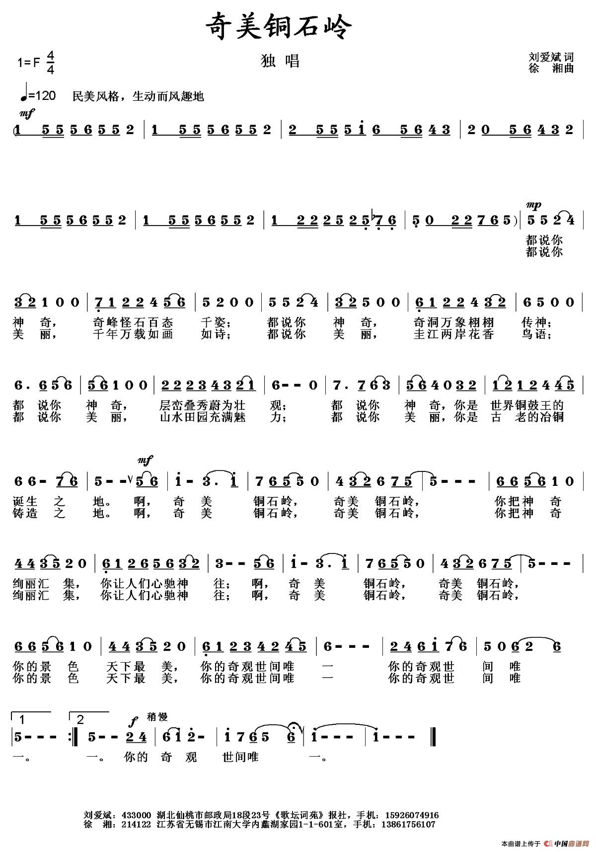 作词:刘爱斌   作曲:徐湘   来源:徐湘原创作品   上传:徐湘   日期:2015-08-06   浏览次数: