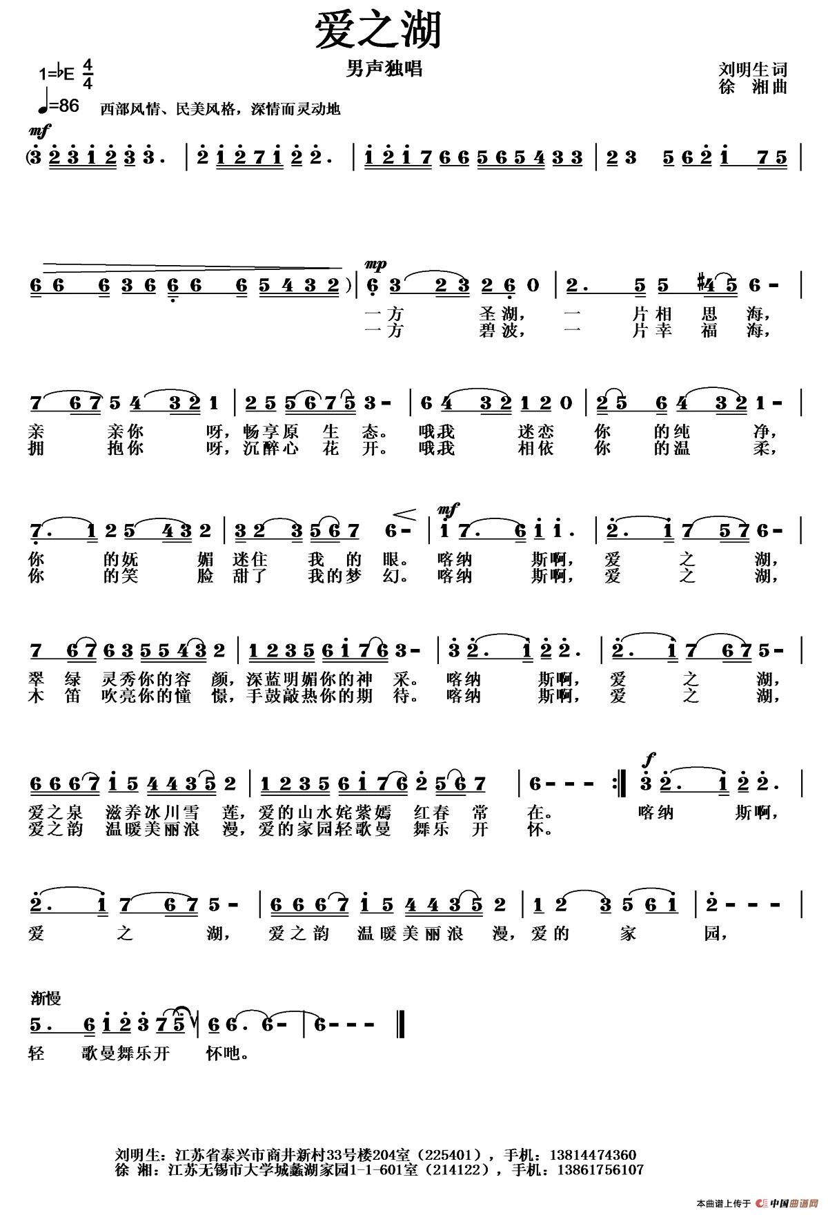 作词:刘明生   作曲:徐湘   来源:徐湘原创作品   上传:徐湘   日期:2015-08-06   浏览次数: