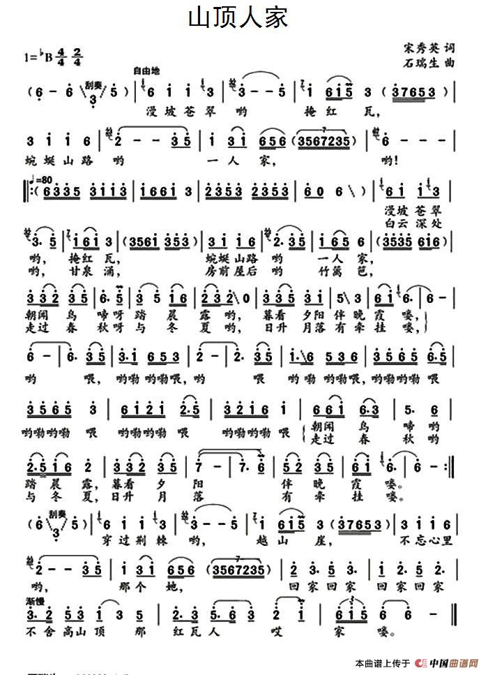 关于《山顶人家》曲谱的评论