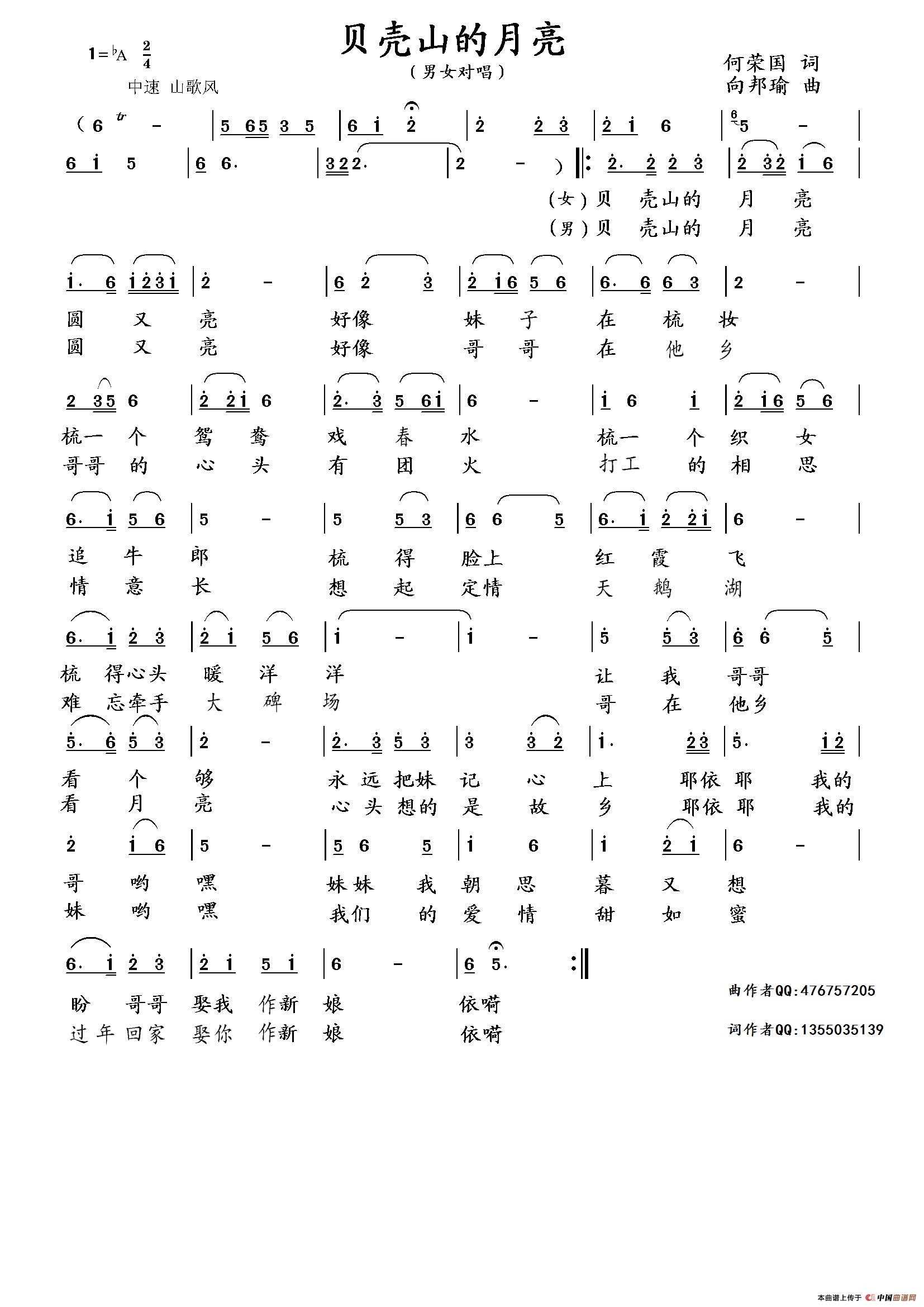 贝壳山的月亮(何荣国词 向邦瑜曲)