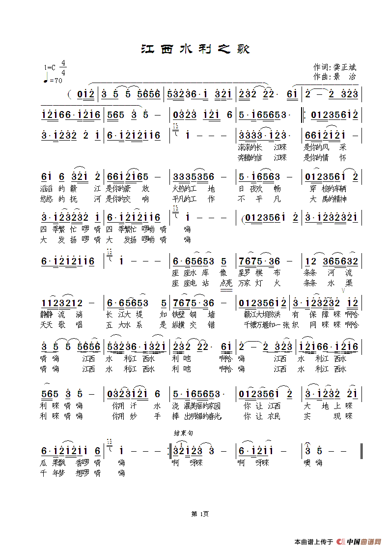 提示:在曲谱图片上单击右键,选择"图片另存为..."即可将曲谱保存到您的电脑中,打印时候可将图片插入到WORD中,调整合适大小打印即可。