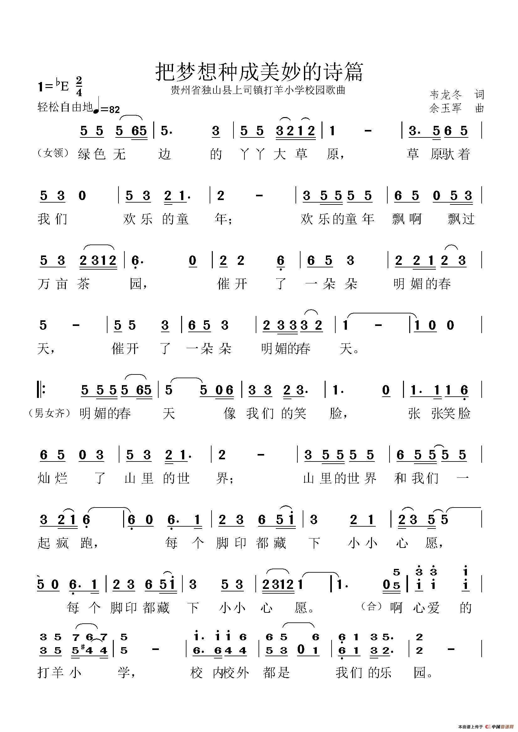 关于《把梦想种成美妙诗篇》曲谱的评论