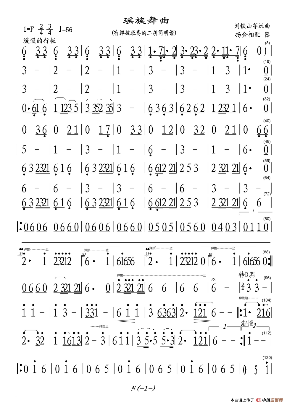 瑶族舞曲(有弹拨跟奏的二胡简明谱)