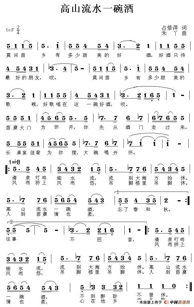 作词:占修萍   作曲:禾丫   演唱(奏):吴忆华   来源:谱友禾丫上传   上传:禾丫   日期:2015-10-26   浏览次数: