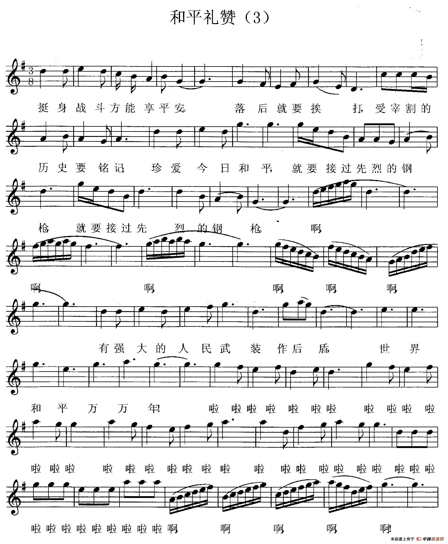 《和平礼赞(又名:和平圆舞曲)》文本歌词