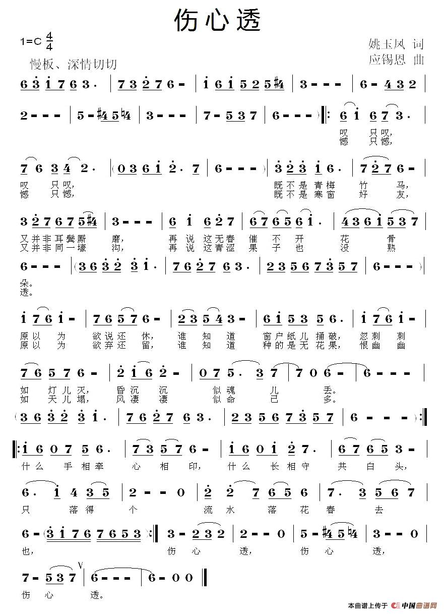 伤心透作词:姚玉凤