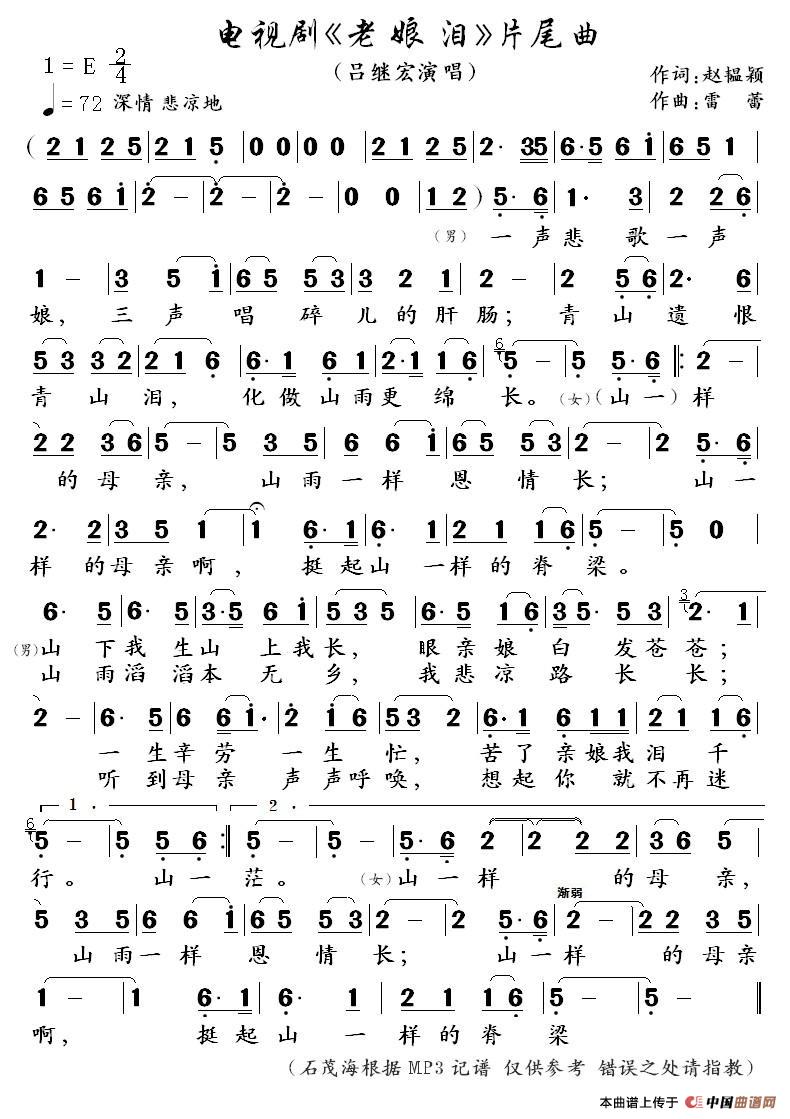 关于《电视剧《老娘泪》片尾曲》曲谱的评论