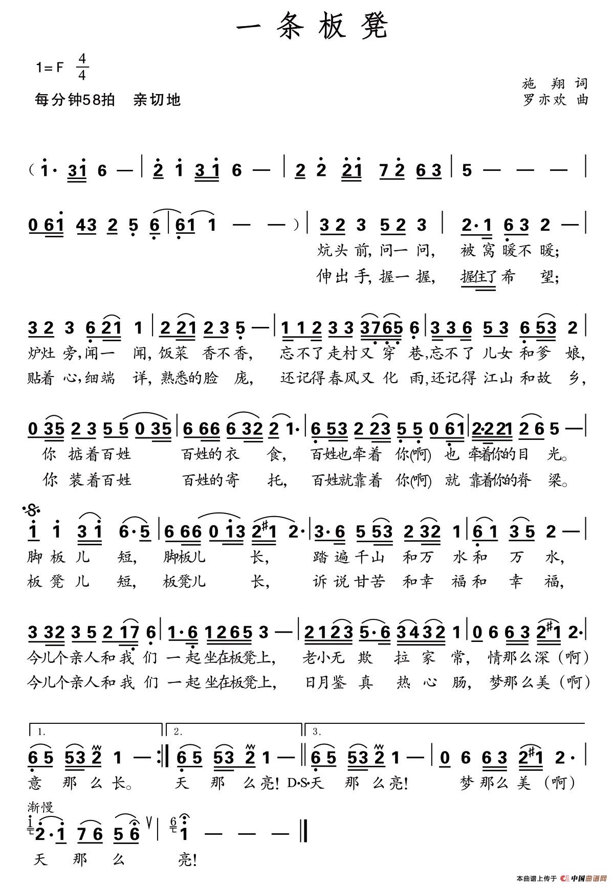 唱响主旋律,传播正能量,是实现中国梦的需要。歌词《一条板凳》,以朴实的语言,充满生活气息的事儿,勾勒出人民公仆与老百姓心心相印的形象。这首词没有漂亮的大道理,也没有诗情画意般的画面,但那大白话的讲述,就像在听一个实实在在的故事。也正如此,词有了与众不同的个性,更有一种使人嗅到接地气味道的感觉。