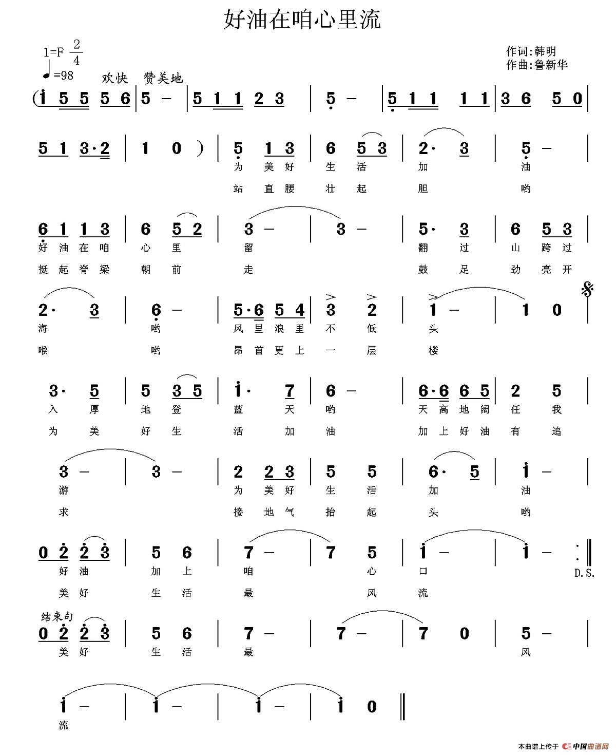 关于《好油在咱心里流》曲谱的评论