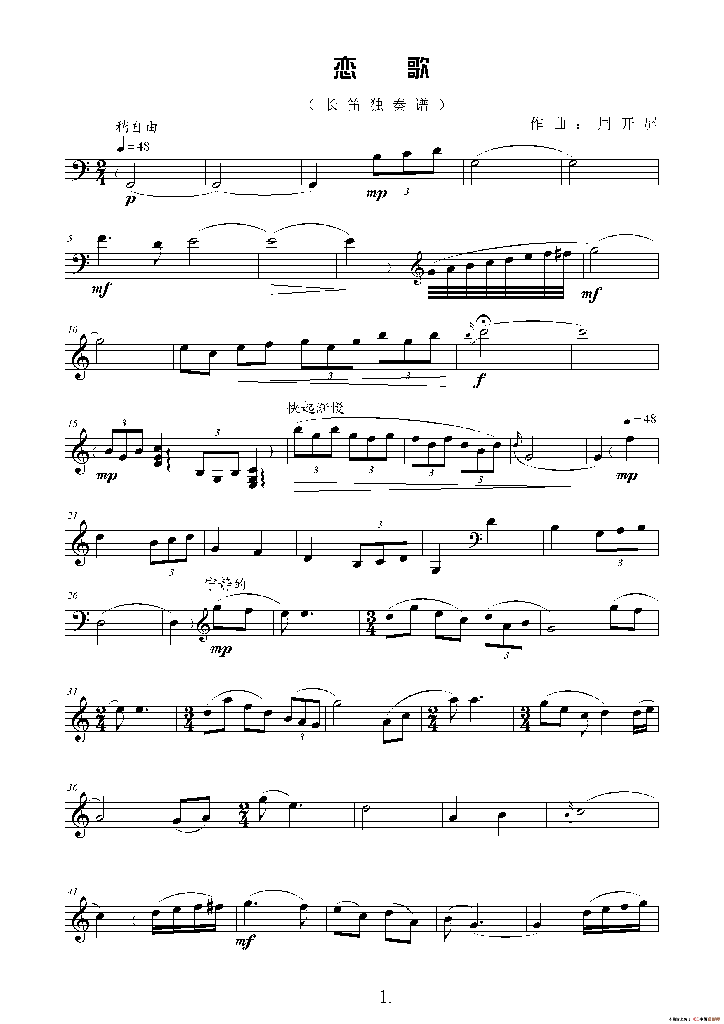 周开屏最新原创长笛小协奏曲《恋歌》美丽而柔情,充满了悠悠思恋和惆怅,充满了滚滚爱恋和热望。