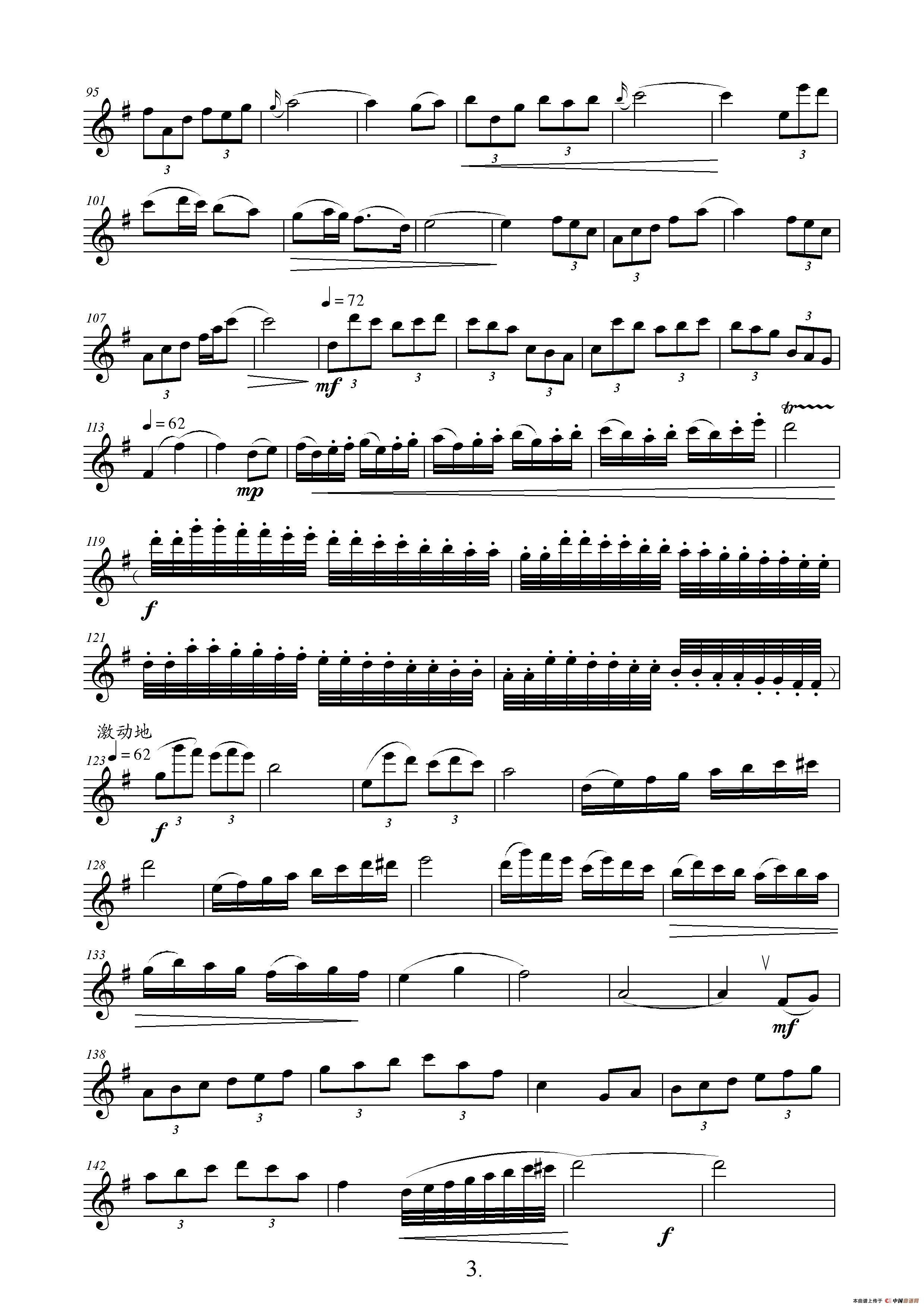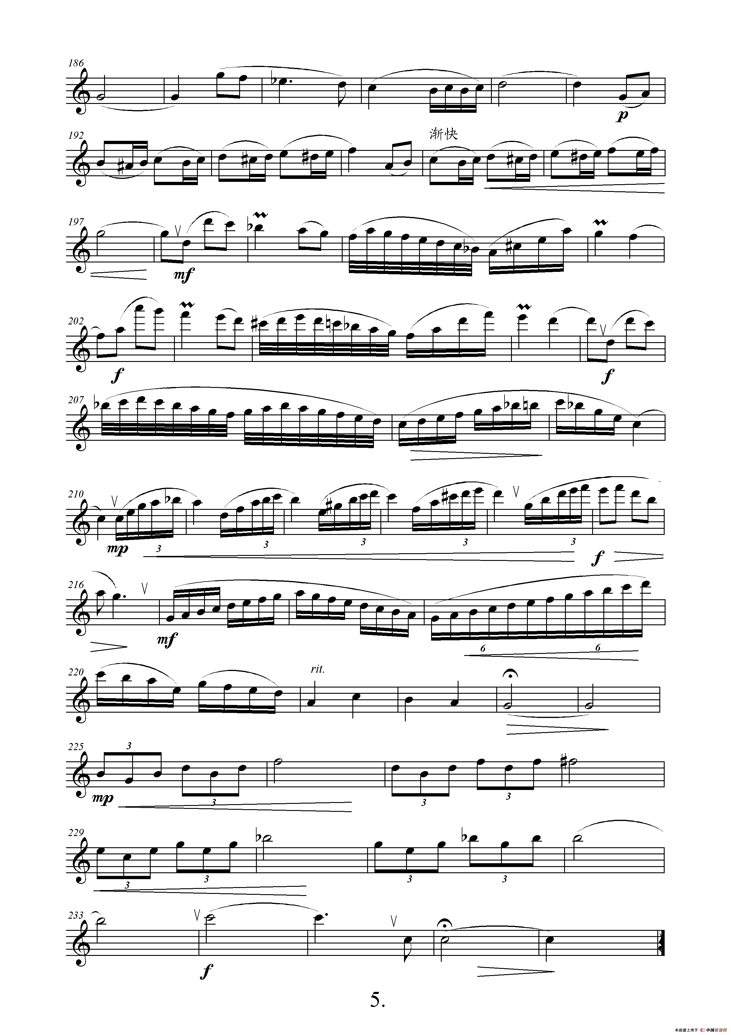 尾声:长笛与乐队美丽而柔情的模进,大调与小调的交替,慢慢结束在主音上得到完满终止。