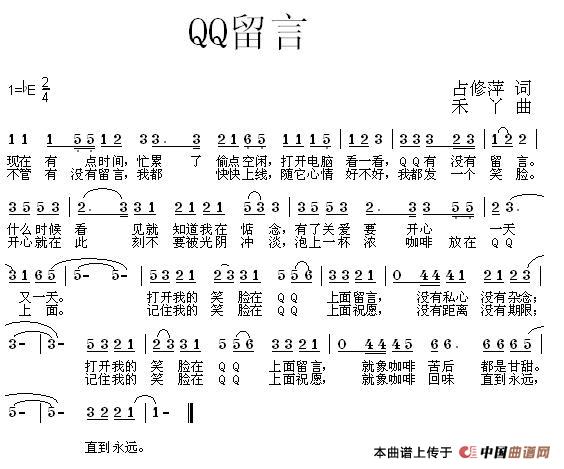 关于《QQ留言》曲谱的评论