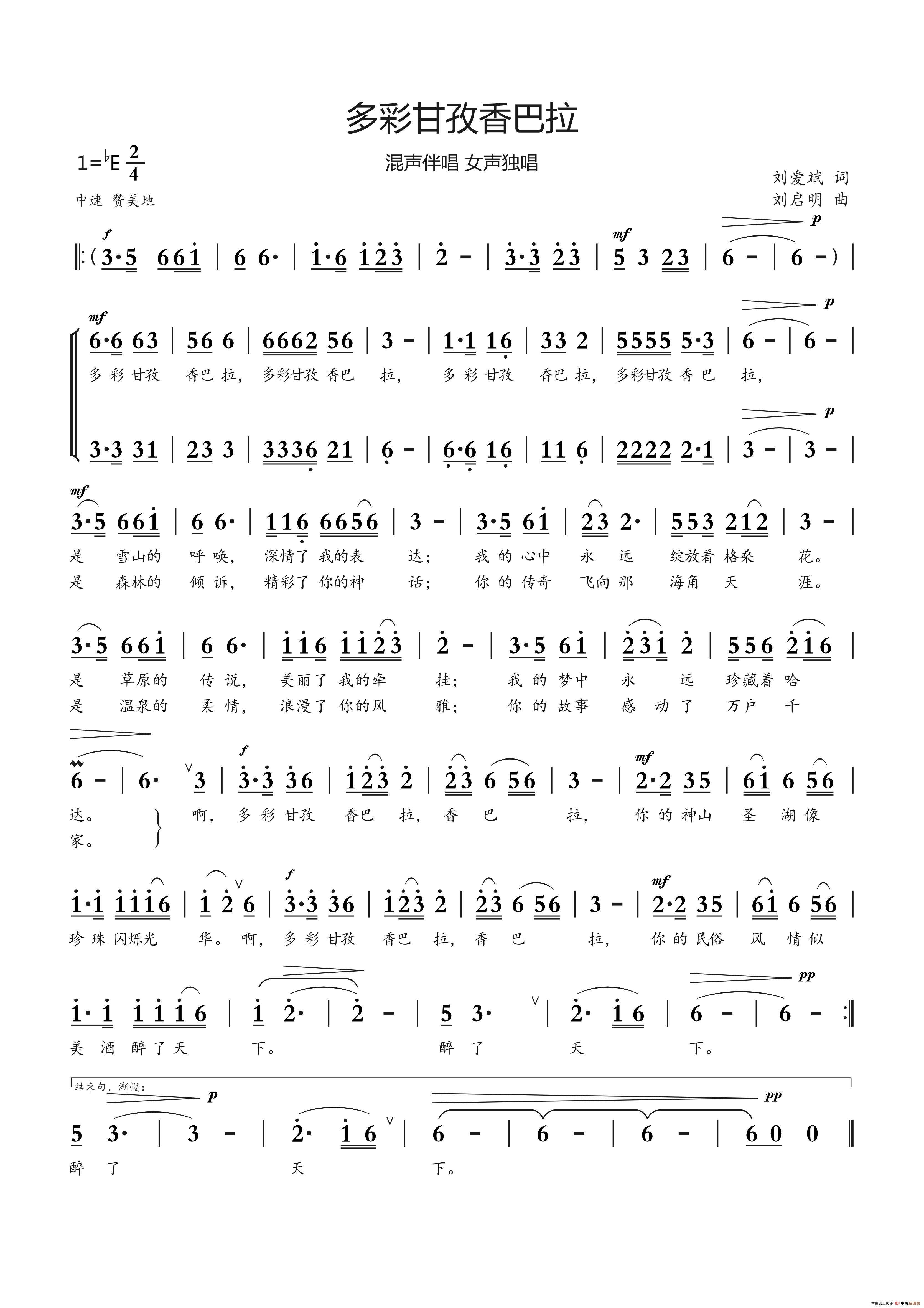 多彩甘孜香巴拉(刘爱斌词 刘启明曲)(1)_原文件名:《多彩甘孜香巴拉》(曲谱刘爱斌词.刘启明曲).jpg