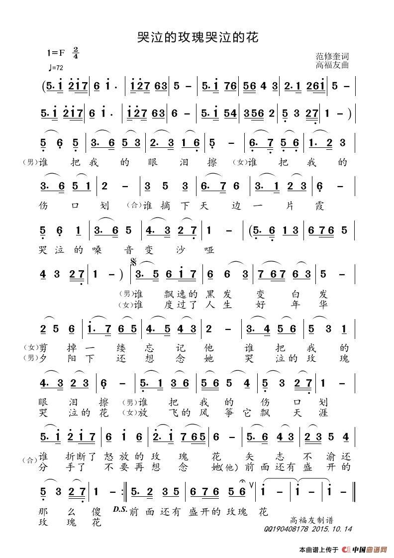 关于《哭泣的玫瑰哭泣的花》曲谱的评论