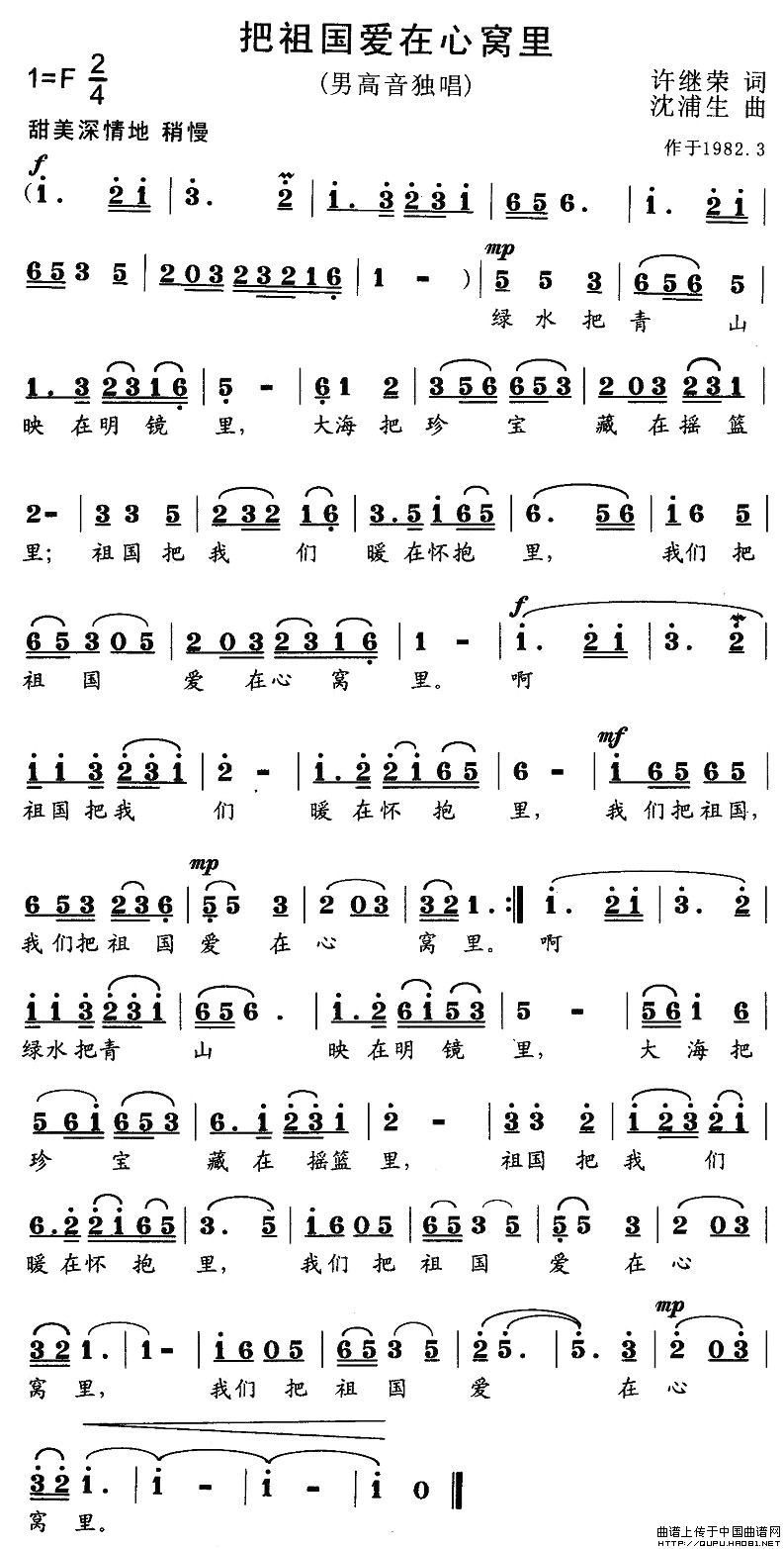 关于《把祖国爱在心窝里》曲谱的评论