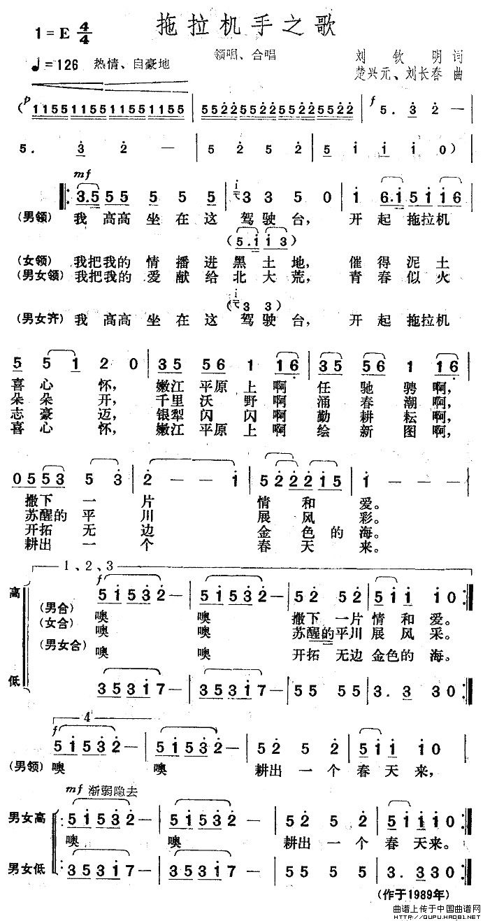 拖拉机手之歌(刘钦明词 楚兴元曲)