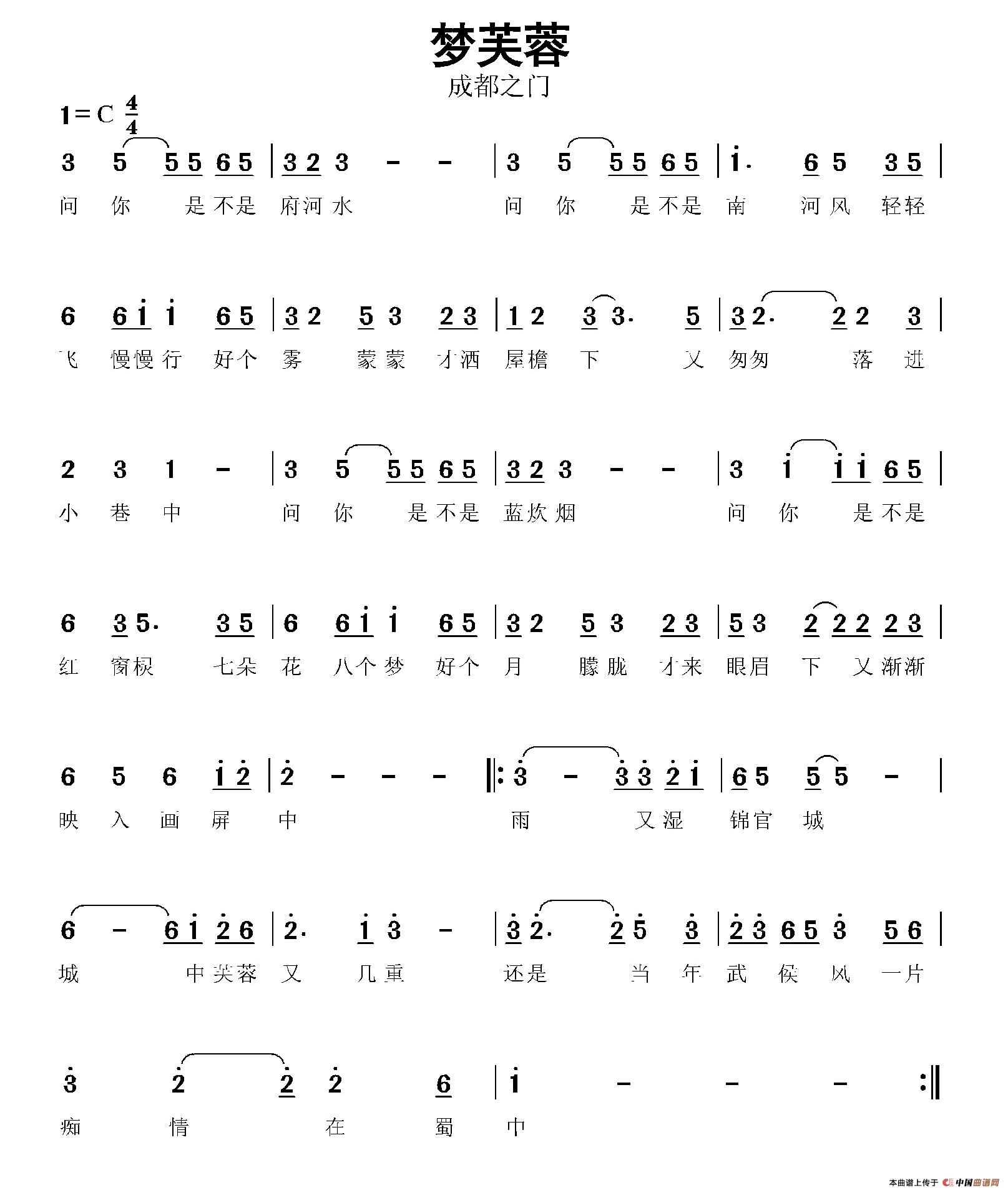 《梦芙蓉》文本歌词