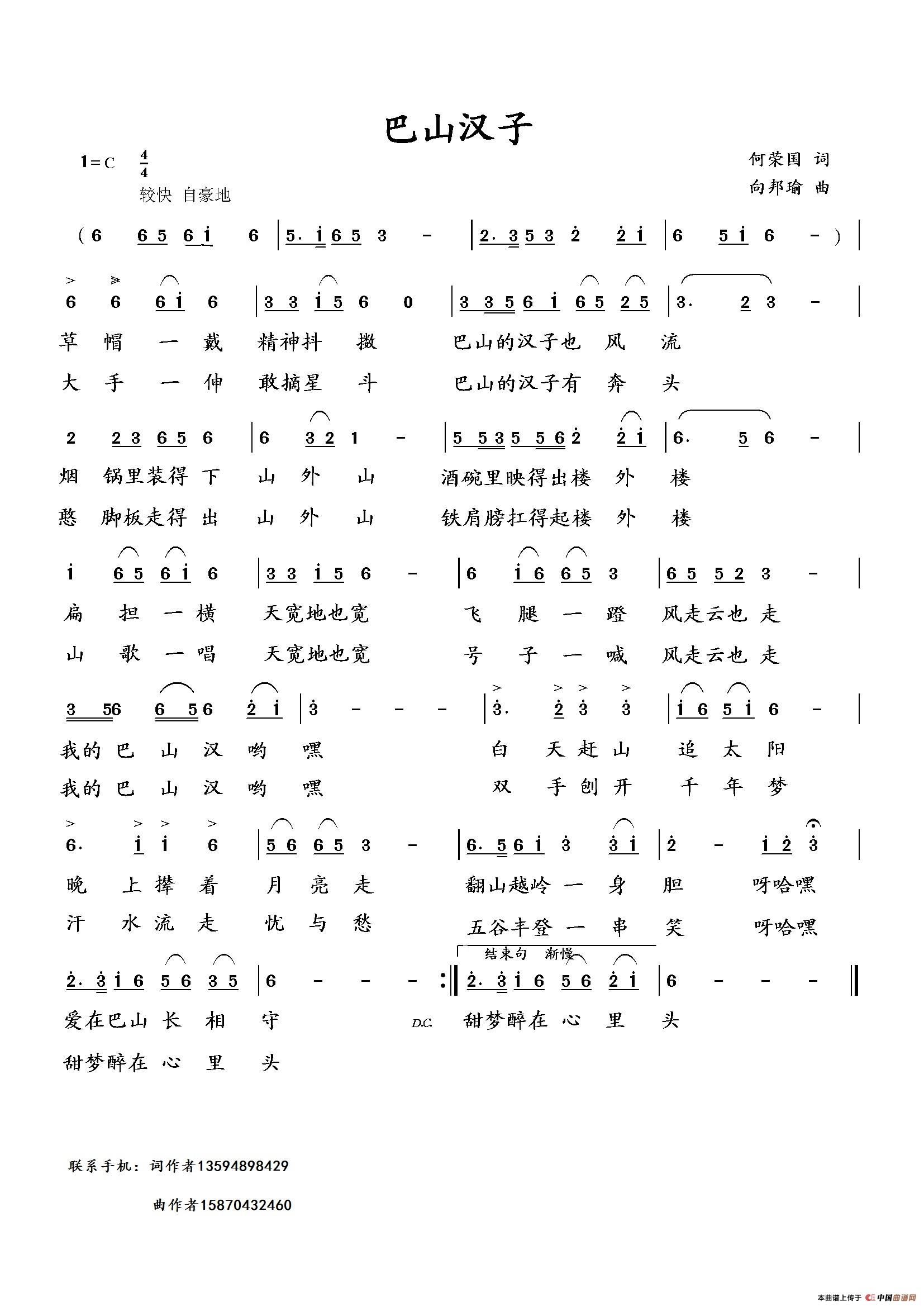 巴山汉子(何荣国词 向邦瑜曲)