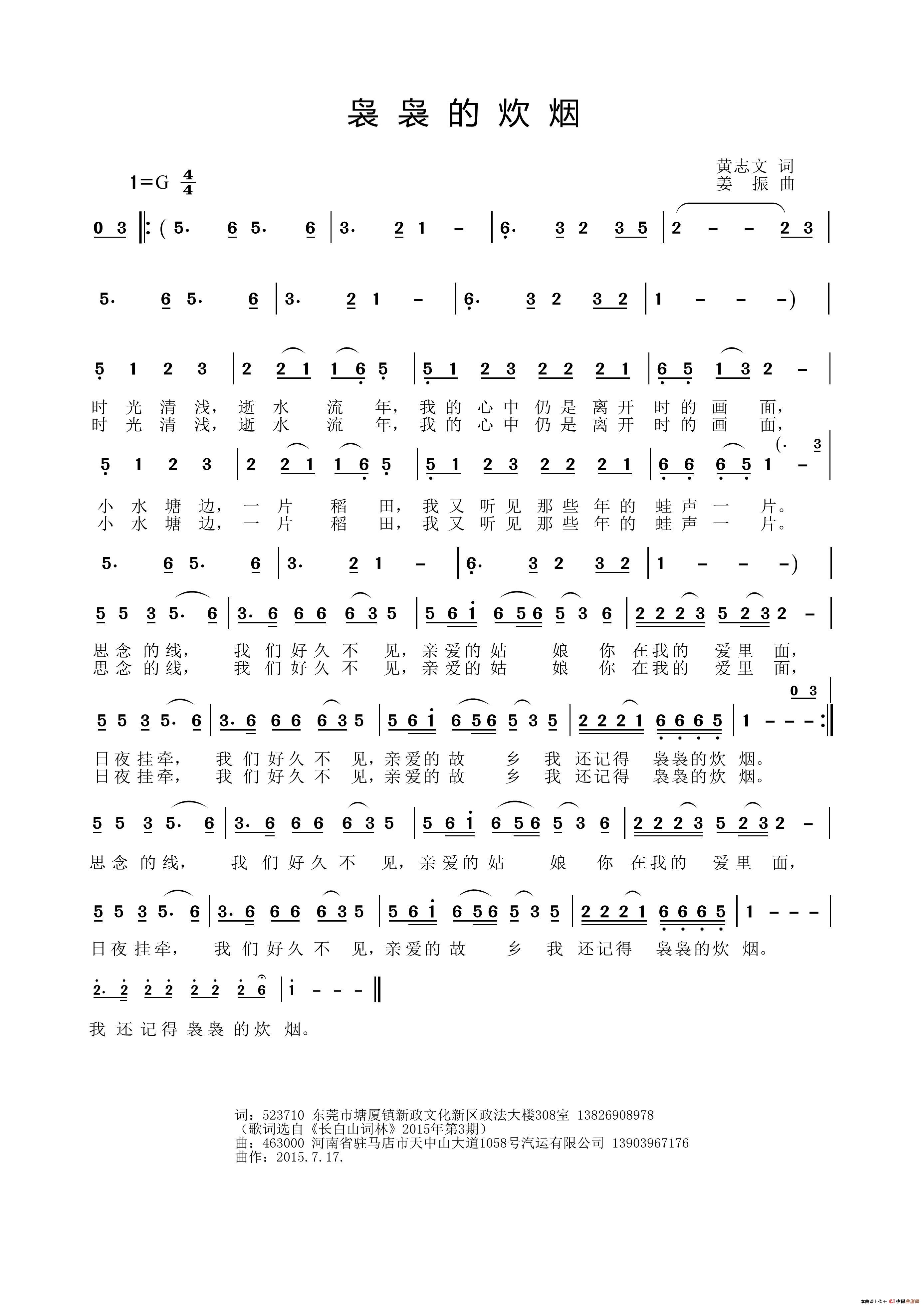 作词:黄志文   作曲:姜振   来源:谱友姜振上传   上传:姜振   日期:2016-03-22   浏览次数: