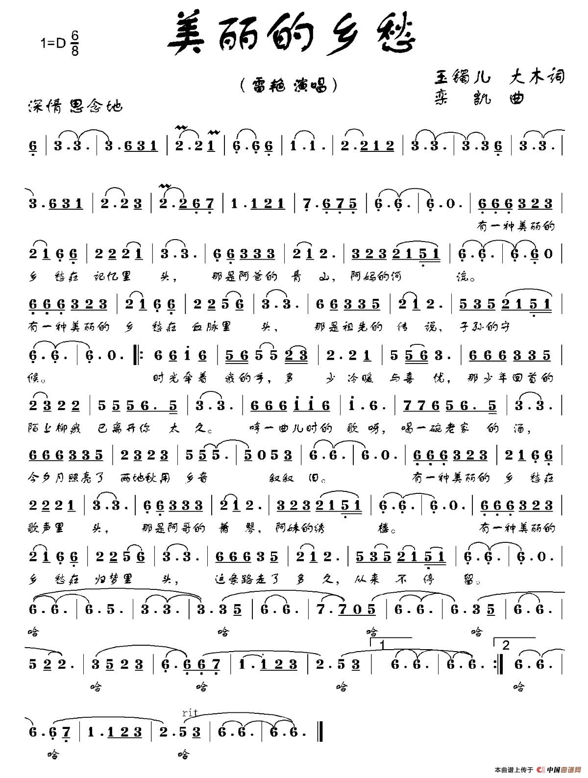 《美丽的乡愁》文本歌词