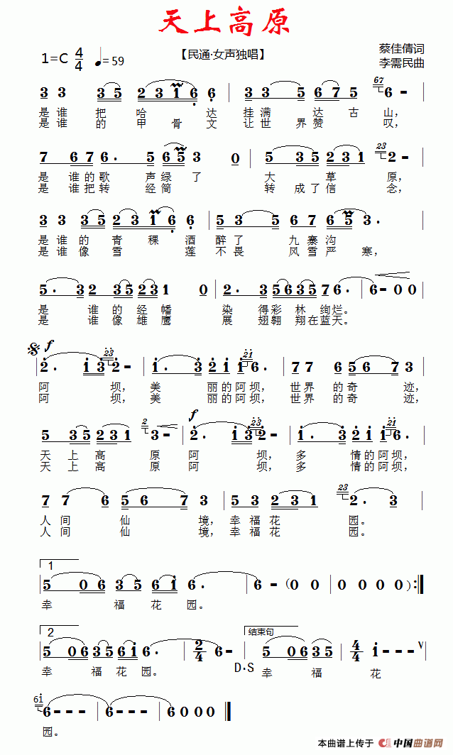 提示:在曲谱图片上单击右键,选择"图片另存为..."即可将曲谱保存到您的电脑中,打印时候可将图片插入到WORD中,调整合适大小打印即可。