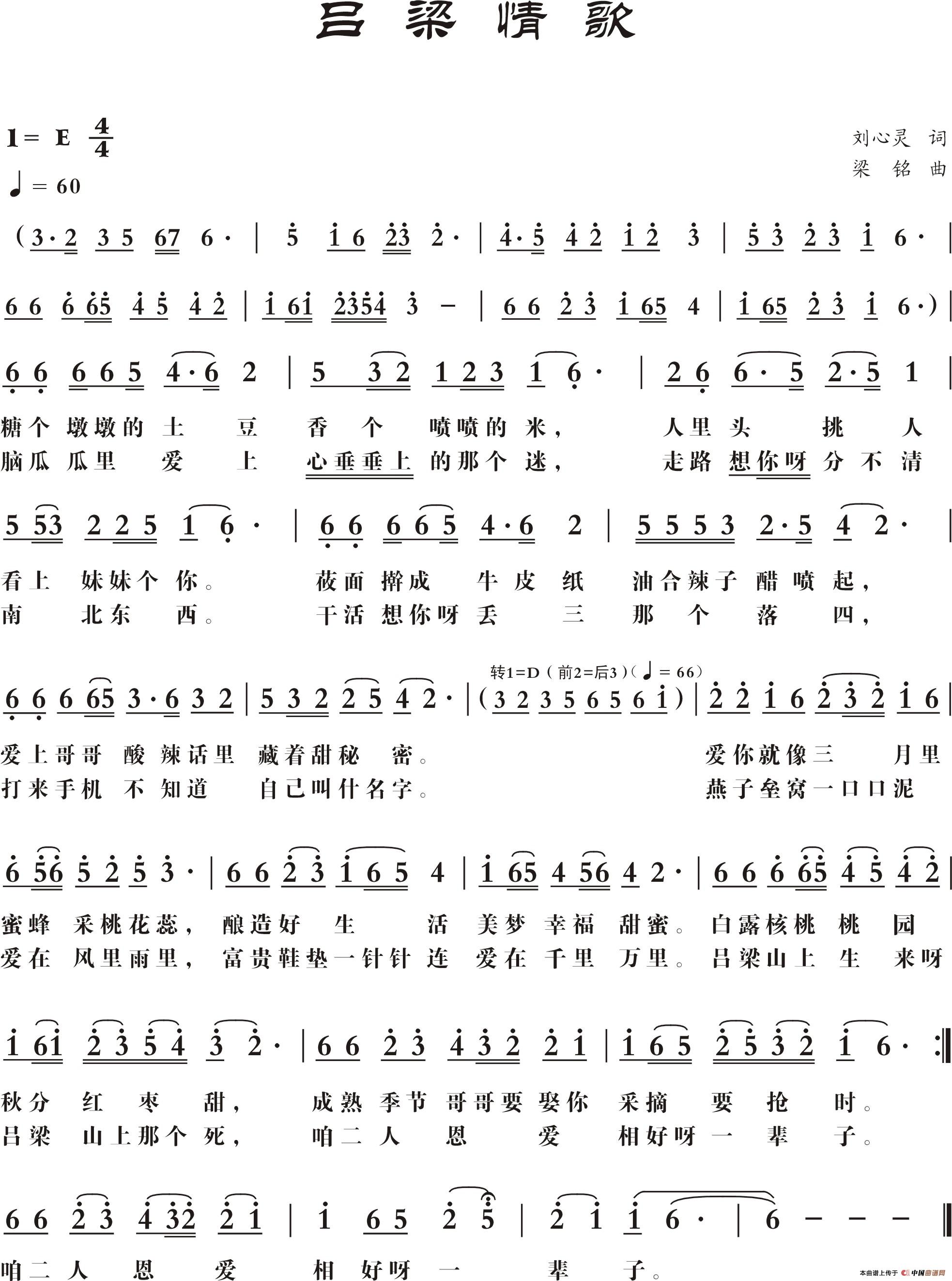 关于《吕梁情歌》曲谱的评论