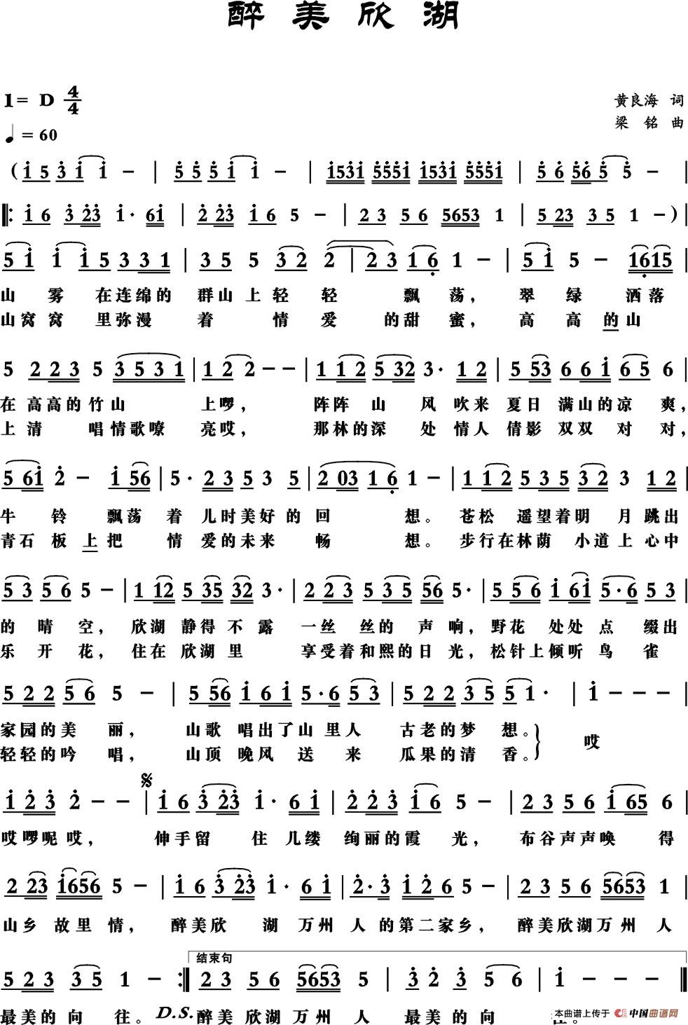 醉美欣湖(黄良海词,梁铭曲,演唱:刘亚芹)