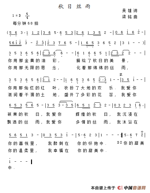 秋日丝雨(吴雄词 ,梁铭曲,演唱:刘敬之)