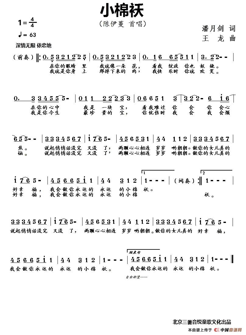 小棉袄(潘月剑词 王龙曲)(1)_原文件名:小棉袄歌谱.jpg