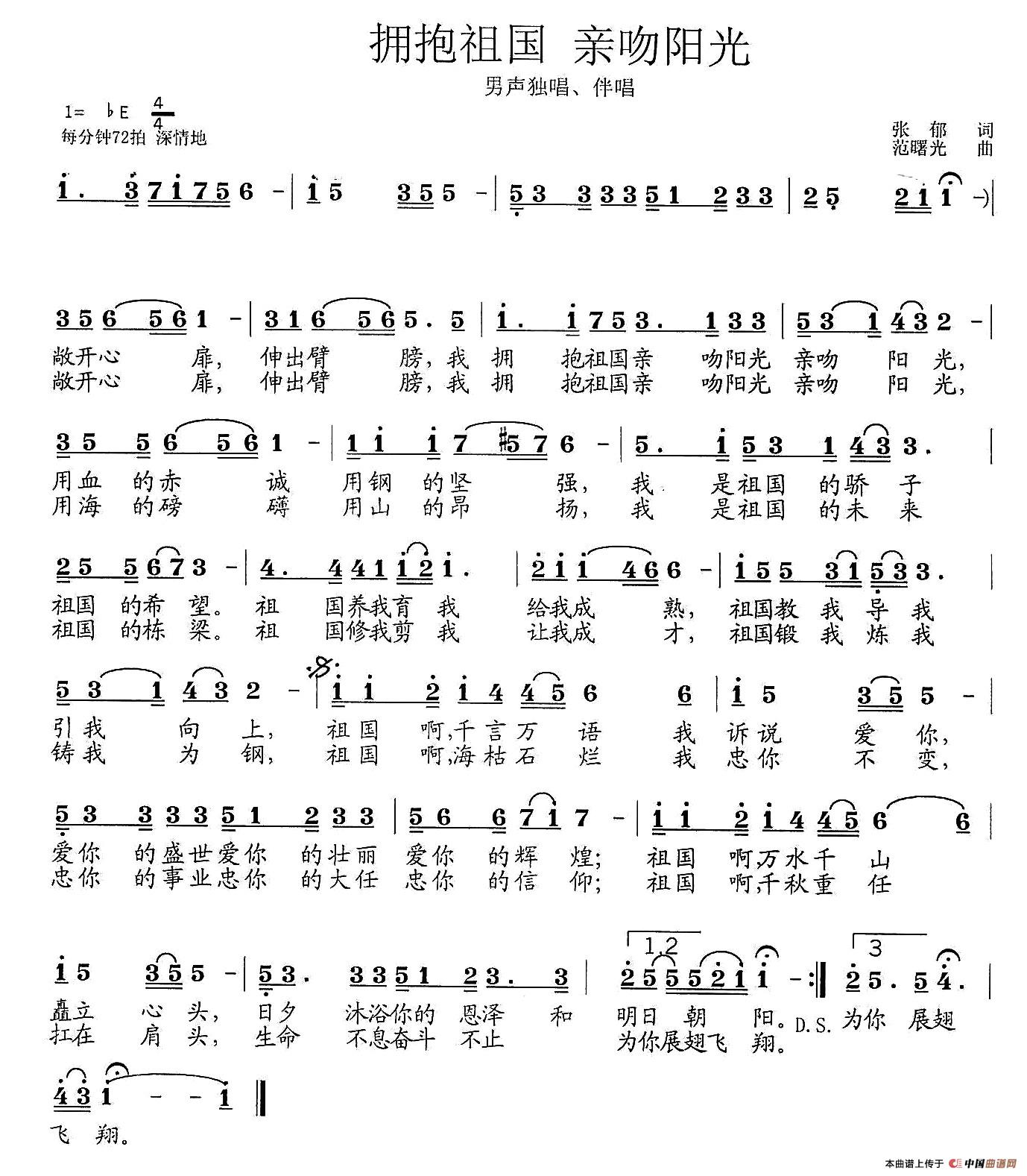 关于《拥抱祖国 亲吻阳光》曲谱的评论