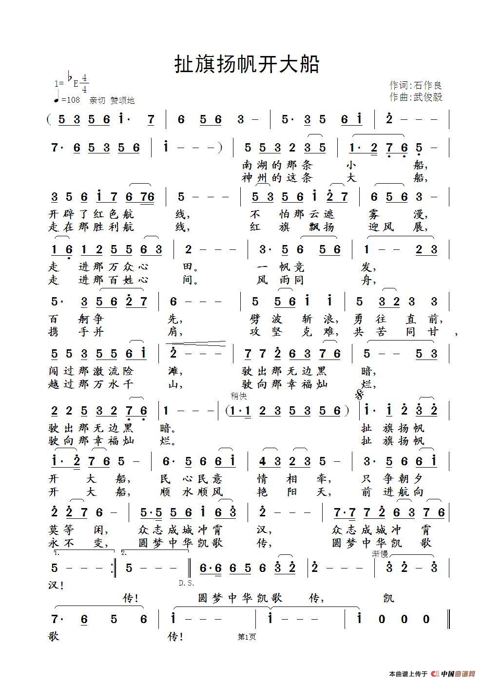 关于《扯旗扬帆开大船》曲谱的评论