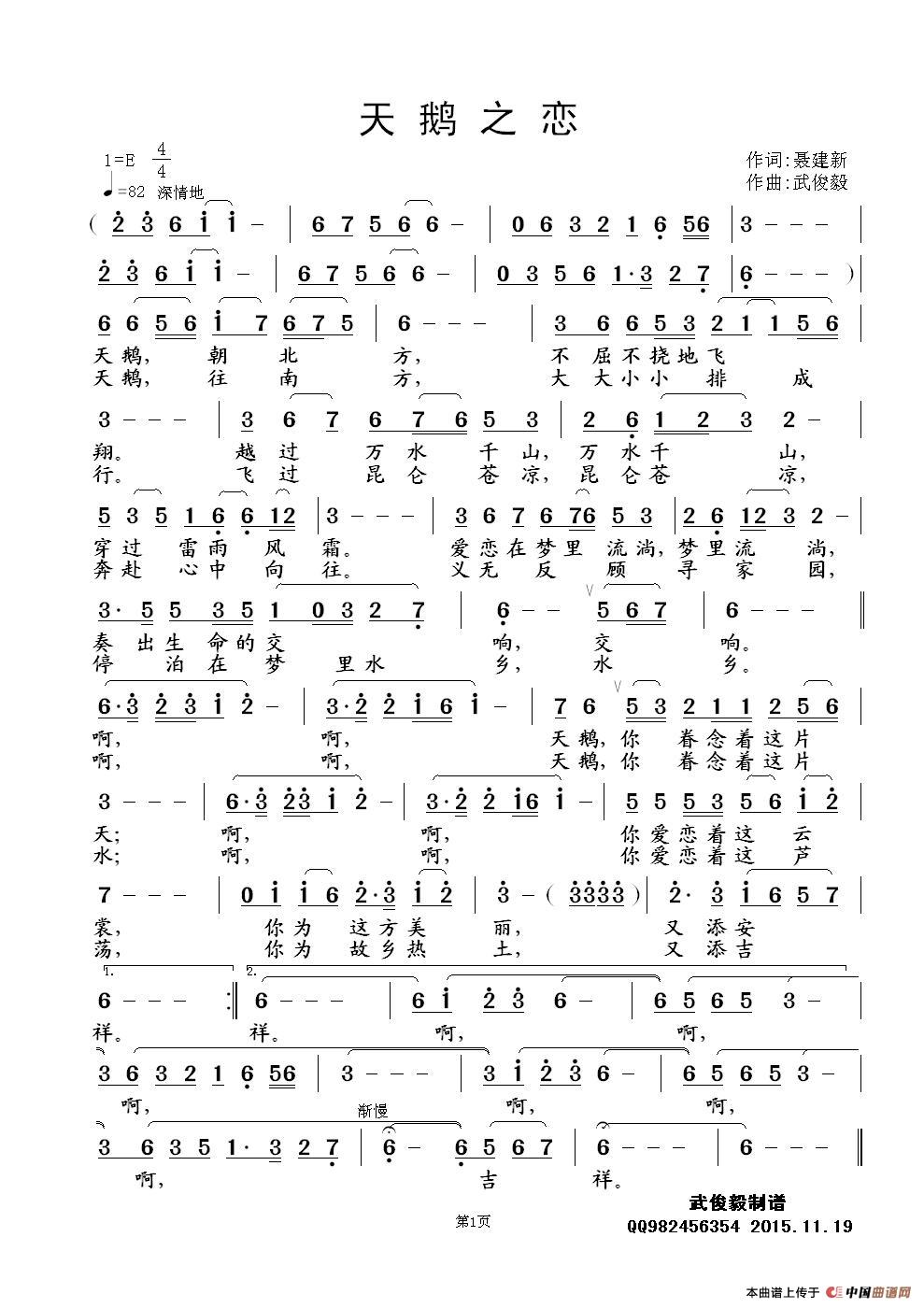 天鹅之恋(聂建新词 武俊毅曲)