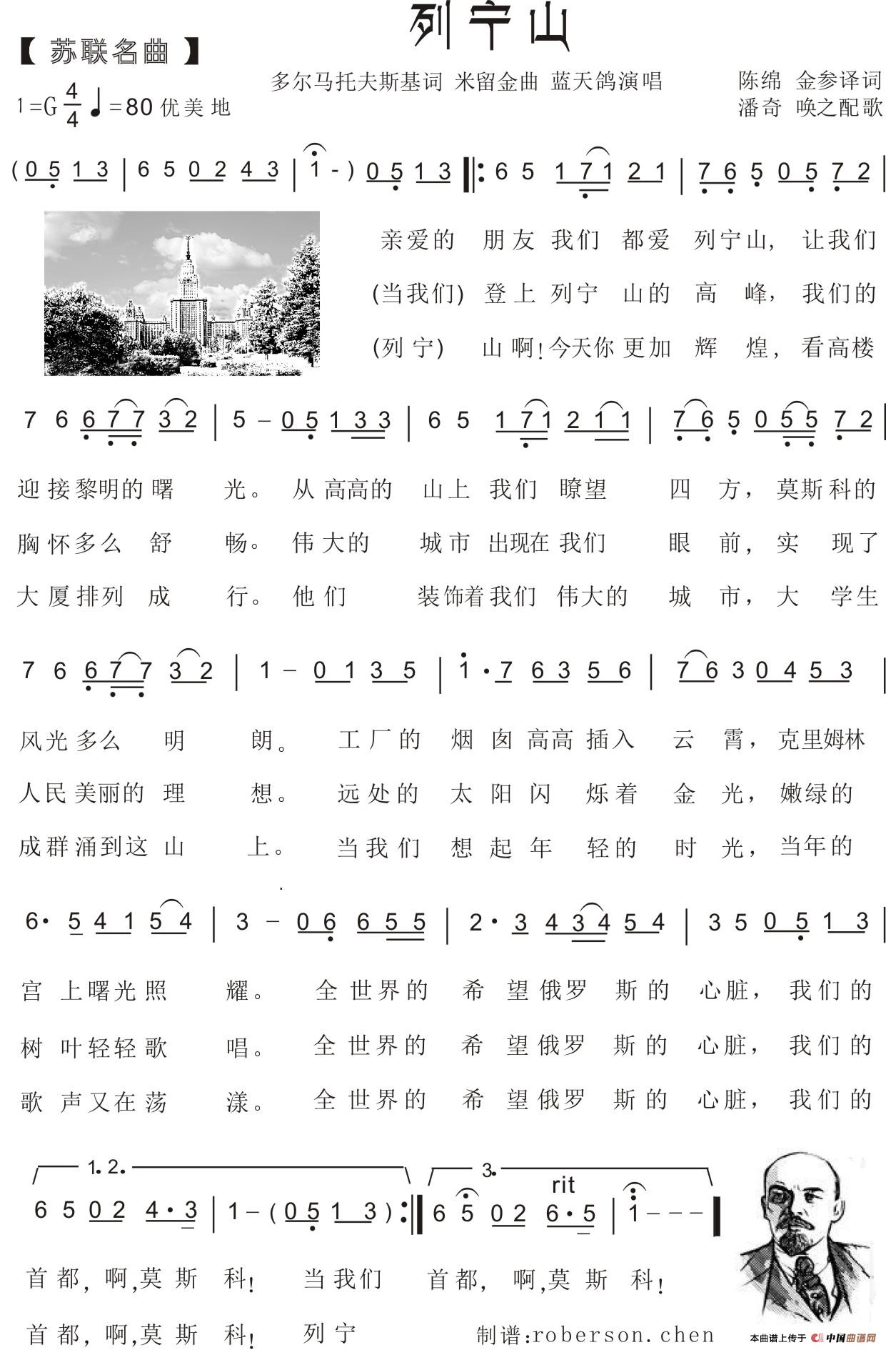 (列宁山座落在莫斯科河畔,是著名的大学城;这首歌就像一首莫斯科的市歌。歌者父亲的苏联友人是莫斯科汉学家纳乌莫夫)