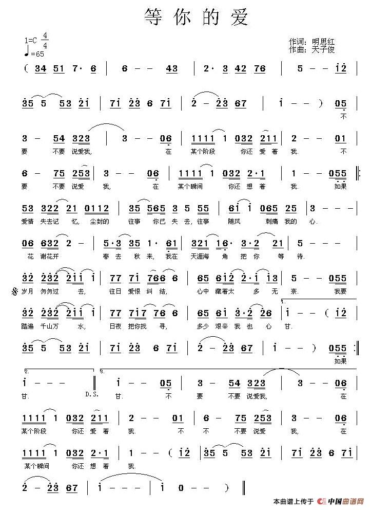 提示:在曲谱图片上单击右键,选择"图片另存为..."即可将曲谱保存到您的电脑中,打印时候可将图片插入到WORD中,调整合适大小打印即可。