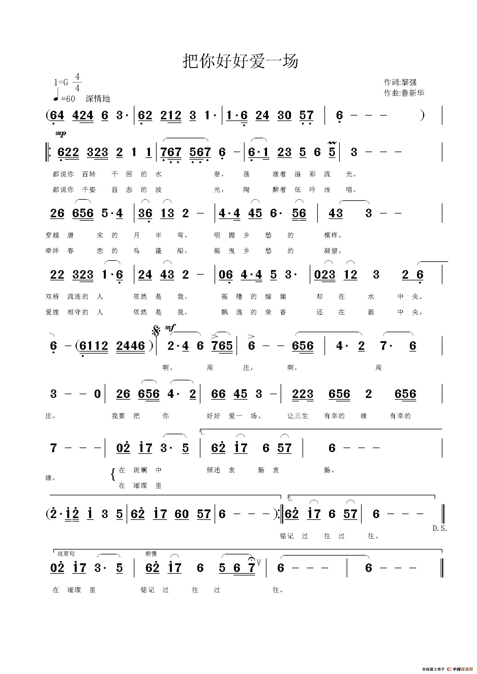 关于《把你好好爱一场》曲谱的评论