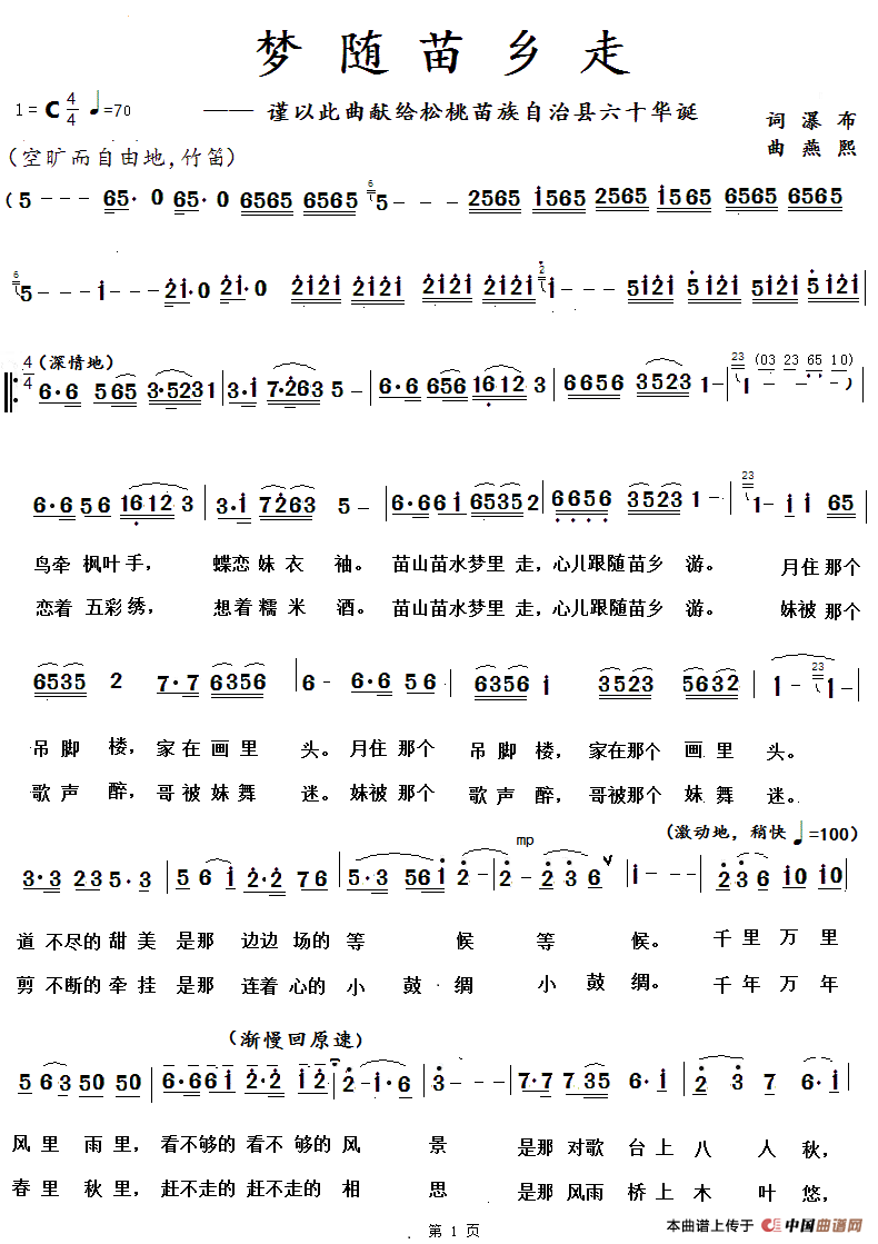 歌曲创作于松桃苗族自治县成立60周年之际(今年11月是松桃苗族自治县成立60周年庆典)——谨以此歌献给松桃苗族自治县成立60华诞!