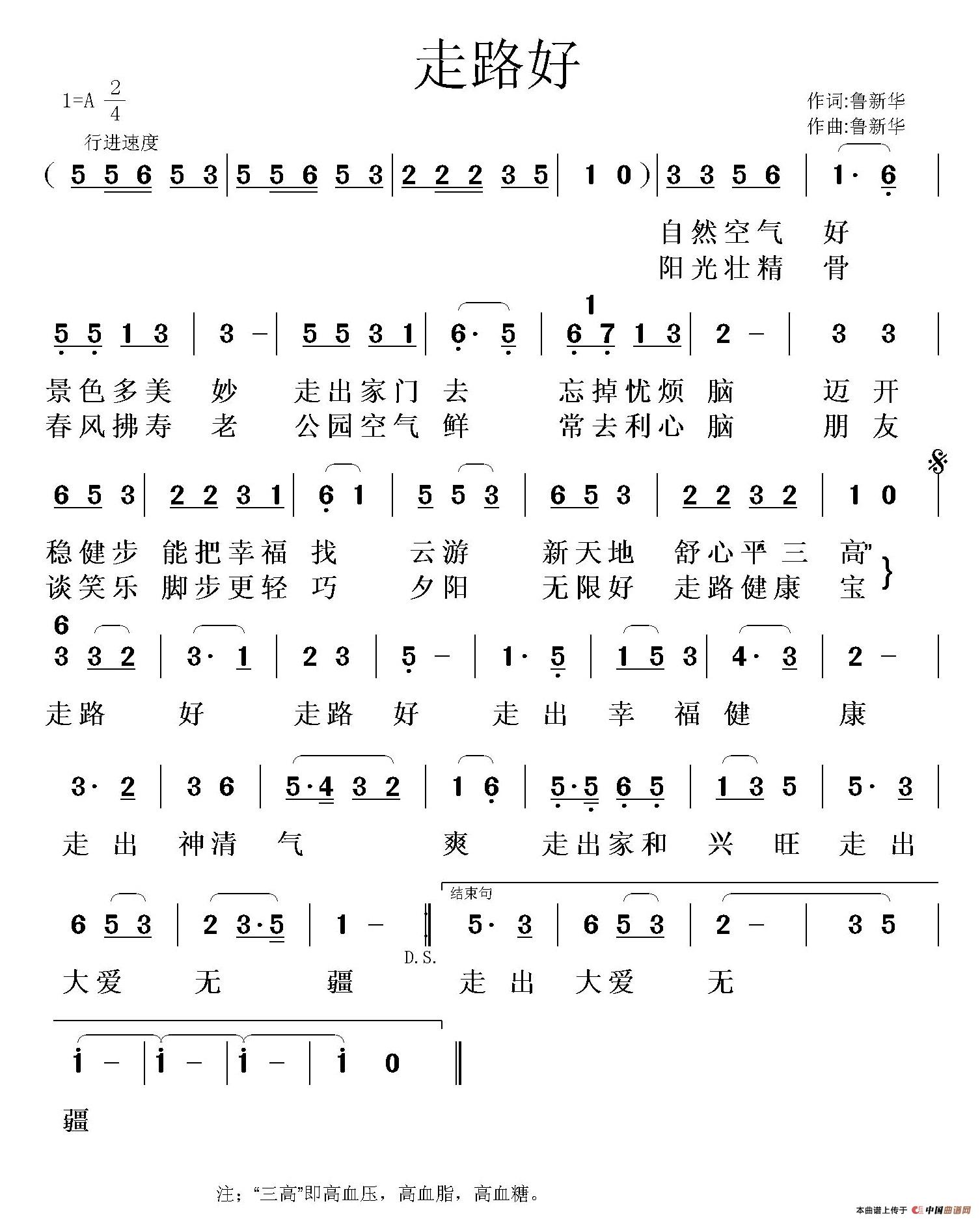 走路是中老年人锻练身体的最佳方法。借31届奥运会之际,把此歌送给朋友们,愿大家多一份快乐,身体健康。