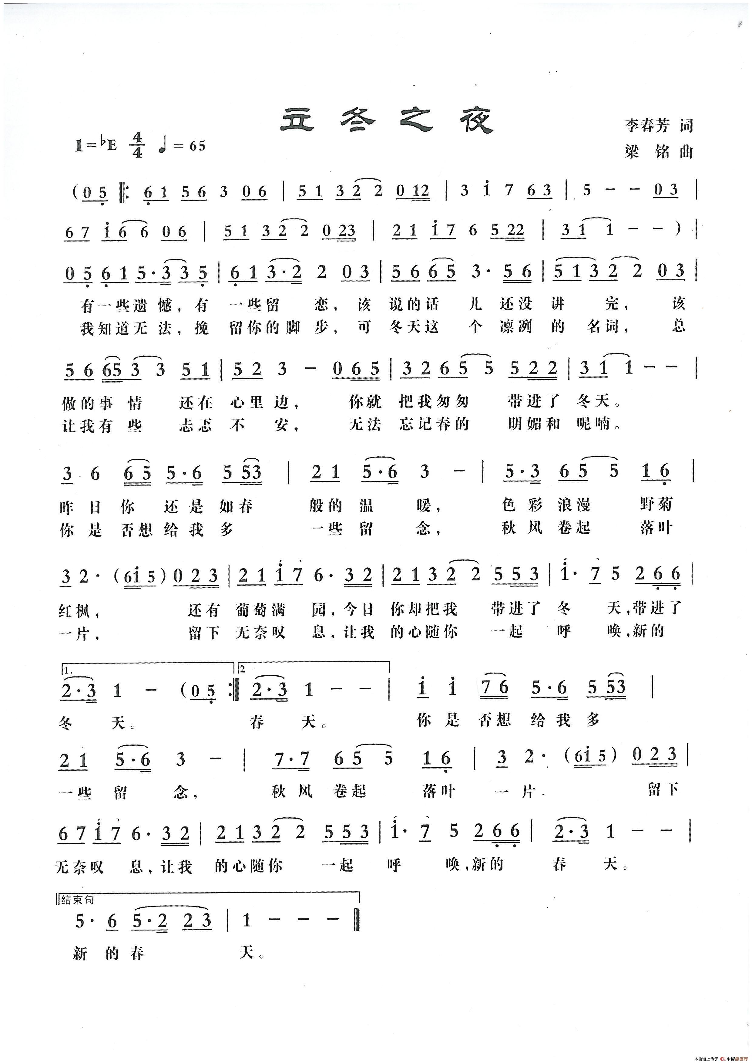 关于《立冬之夜》曲谱的评论